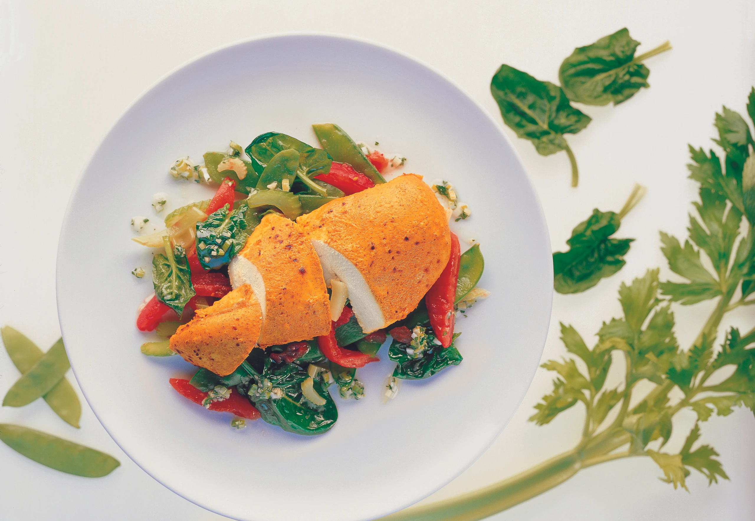 Tandoori-Hühnchen mit Gemüse und Koriander-Ingwer-Vinaigrette