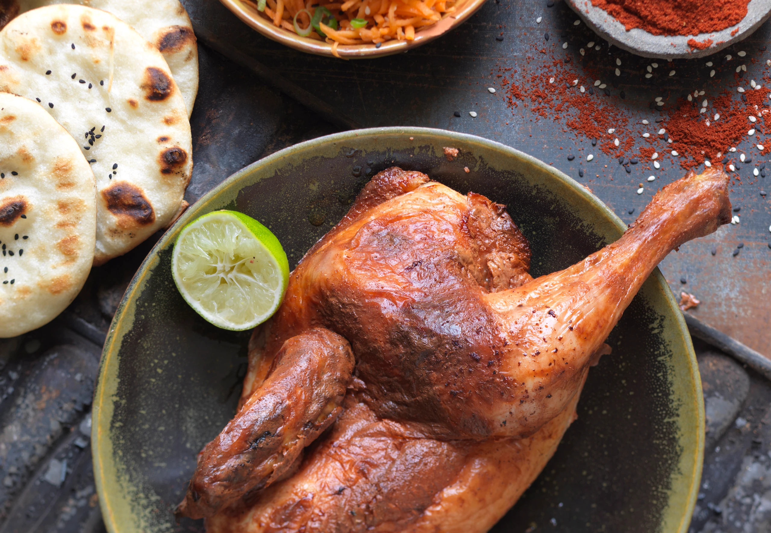 Gegrilltes Tandoori-Huhn mit Karotten-Sesam-Salat