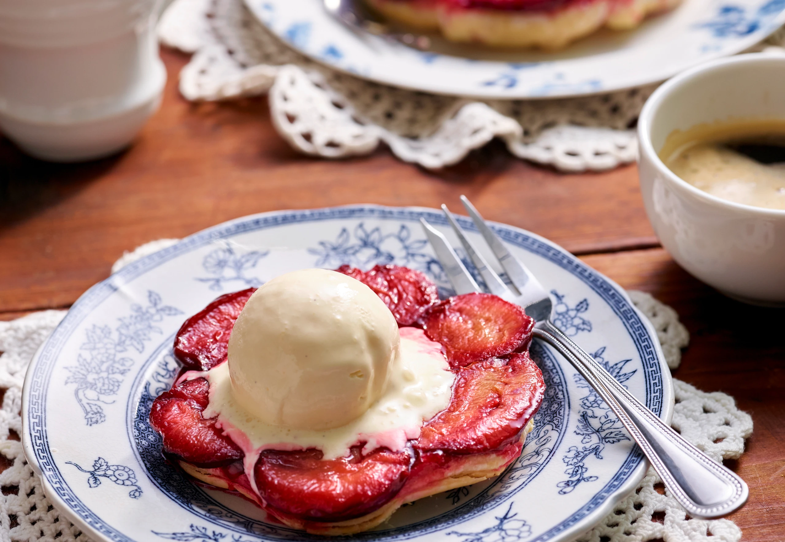 Tarte Tatin mit Zwetschken und Mascarpone-Eis