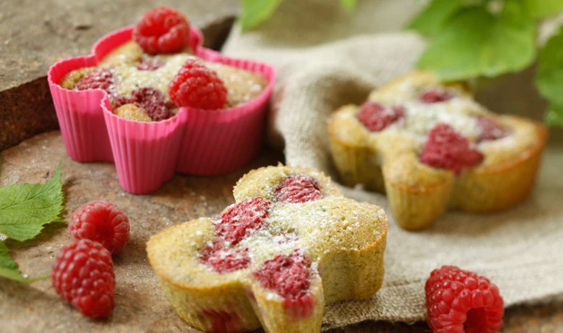 - Mehl, Matcha, Mandeln, Pistazien und Zucker vermischen. Braune Butter und Eiklar zugeben und gut verrühren. Masse in die Förmchen füllen, Himbeeren behutsam hineindrücken. Kuchen im Rohr (mittlere Schiene / Gitterrost) ca. 15 Minuten backen. Herausnehmen und mit Staubzucker bestreut servieren.