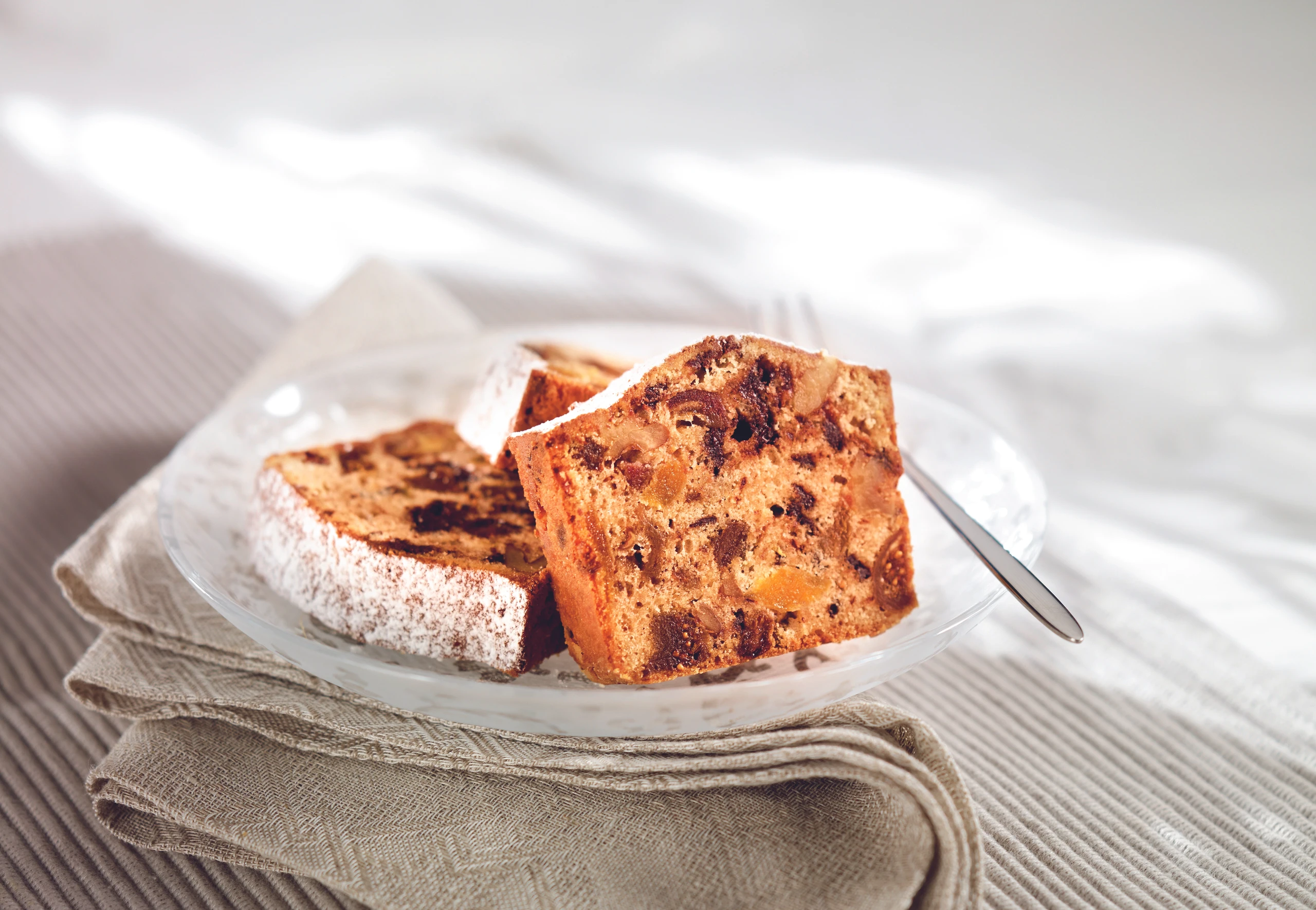 Kuchen vor dem Servieren mit fein gesiebtem Staubzucker bestreuen und in Stücke schneiden.