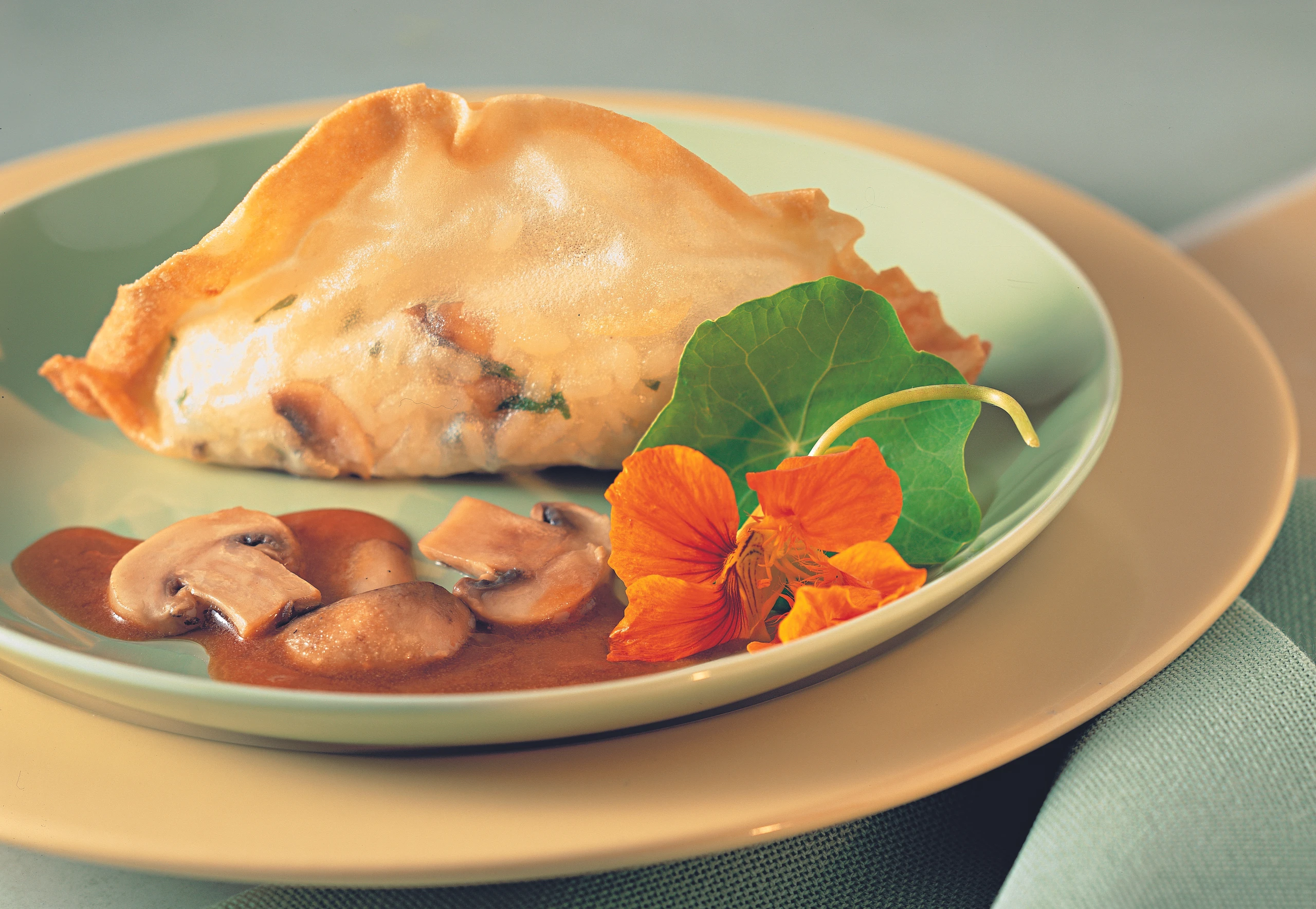 Mit Champignon-Risotto gefüllte Teigtaschen