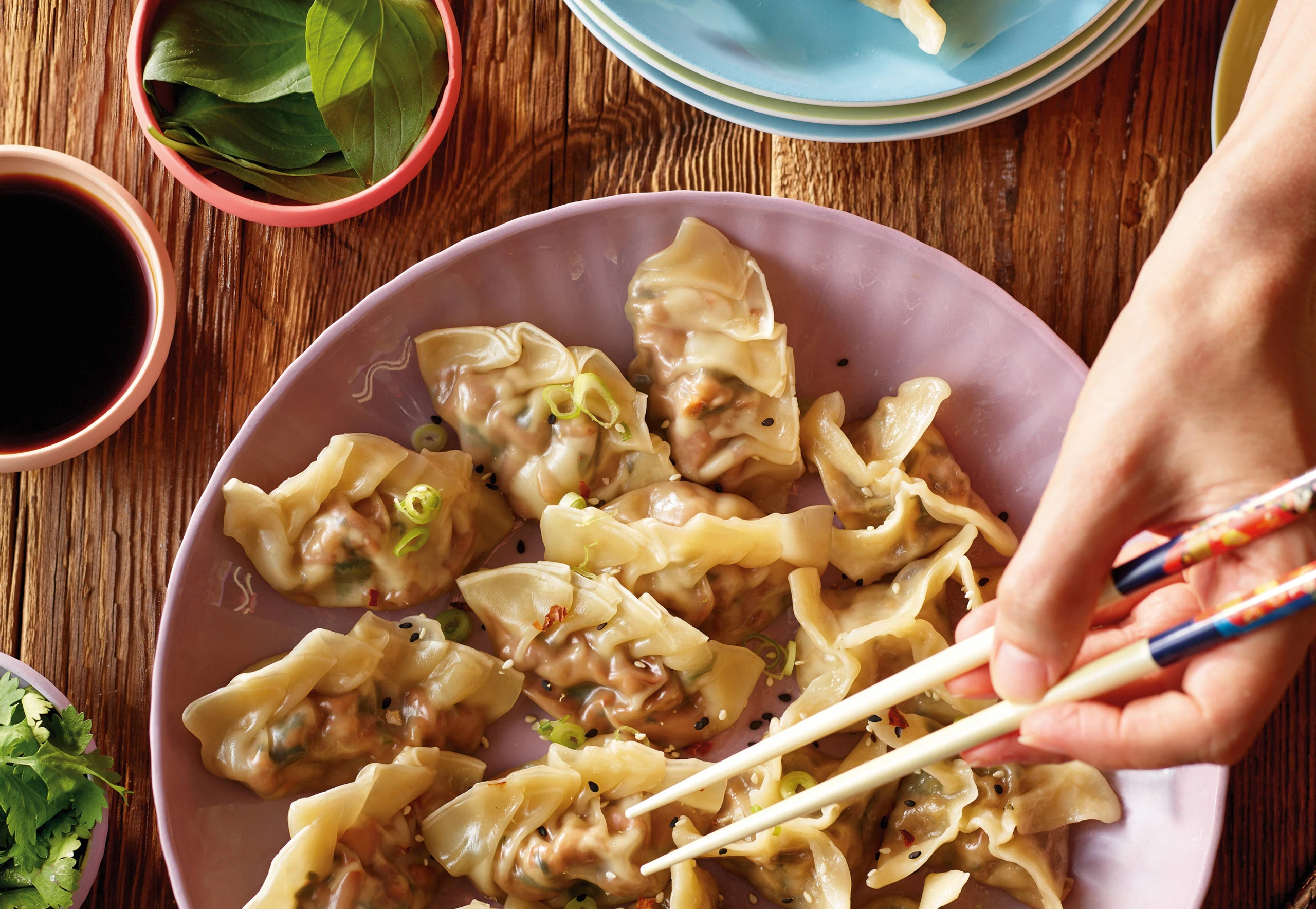 Nach Belieben finalisieren: Für gedämpfte Teigtascherl die Taschen in einem mit Backpapier ausgelegten Dämpfeinsatz 7 bis 9 Minuten dämpfen (sie sind fertig, wenn die Masse durch die Hülle scheint). Für gebratene Teigtascherl 2 EL neutrales Öl in einer Pfanne erhitzen, Tascherl darin anbraten, bis der Boden gebräunt ist, mit einem guten Schuss Wasser ablöschen. Sofort einen Deckel aufsetzen und Tascherl rund 5 Minuten dünsten, bis die Flüssigkeit verkocht ist.