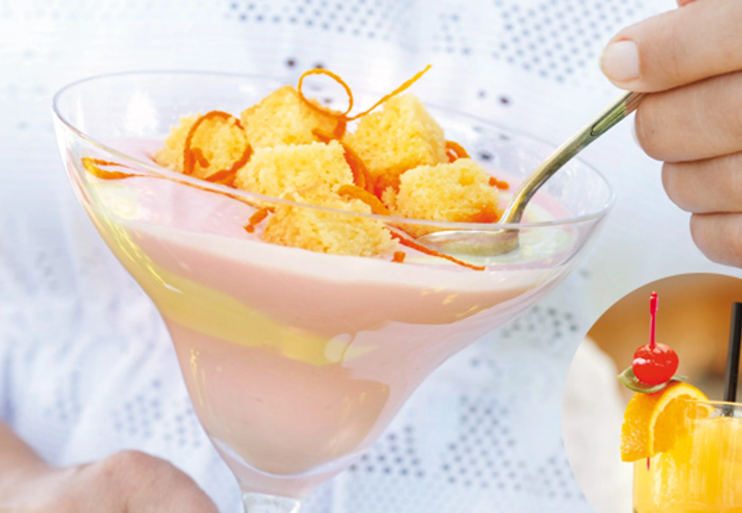 Tequila Sunrise-Creme mit Kuchen und Tequila Sunrise
