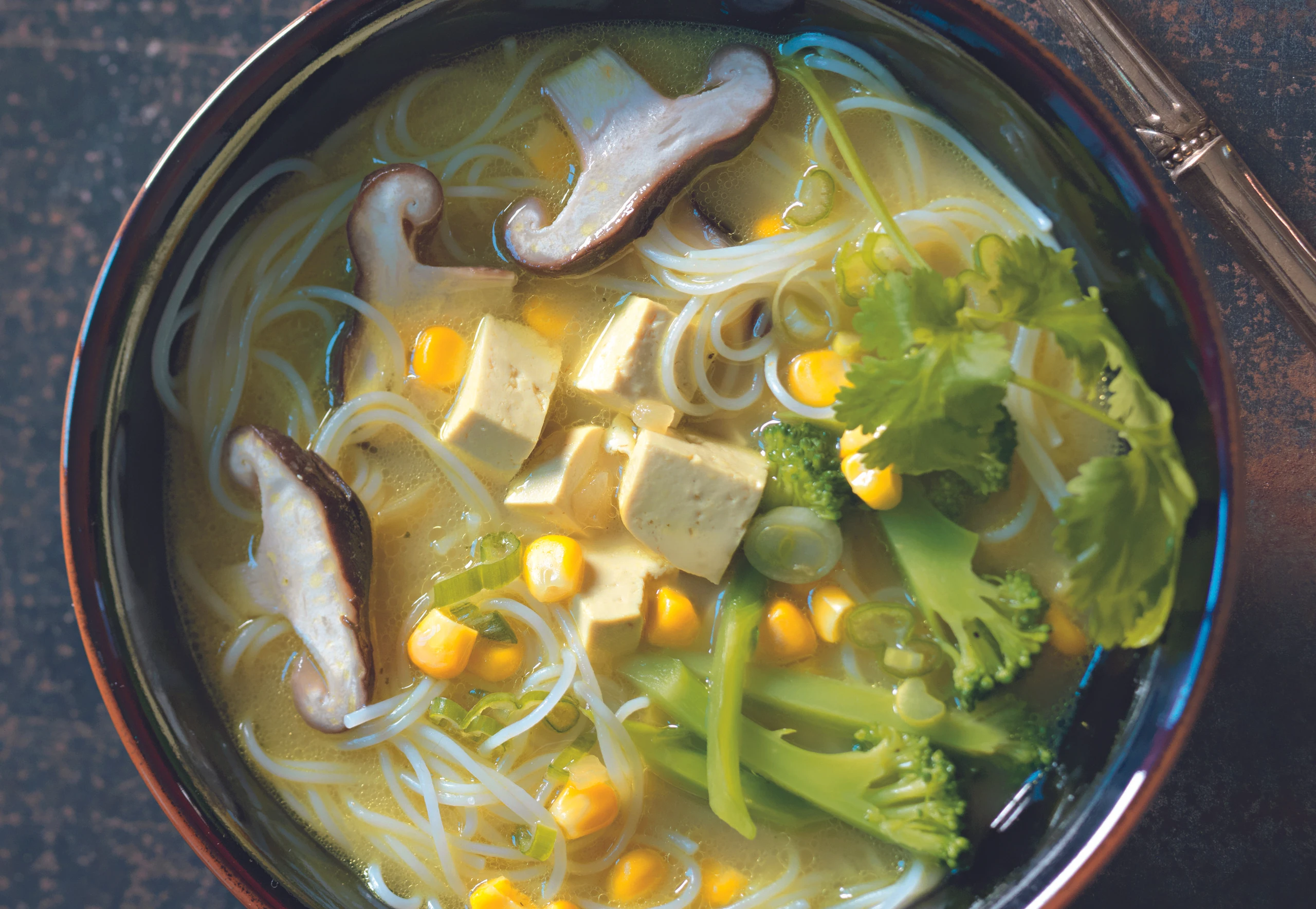 Thai-Nudeltopf mit Tofu und Shiitake-Pilzen