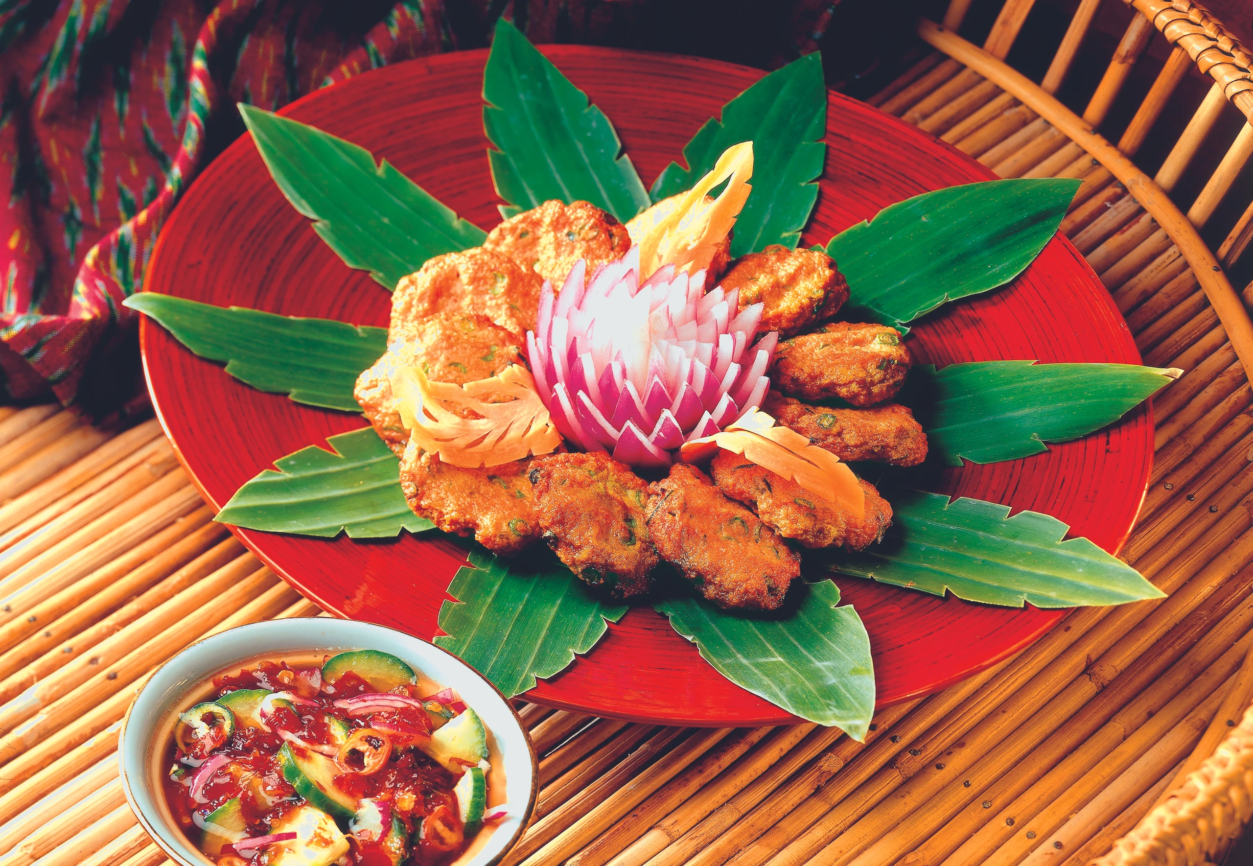 Thot man Gung mit Achat: Thailändische Hühner-Garnelen-Laibchen