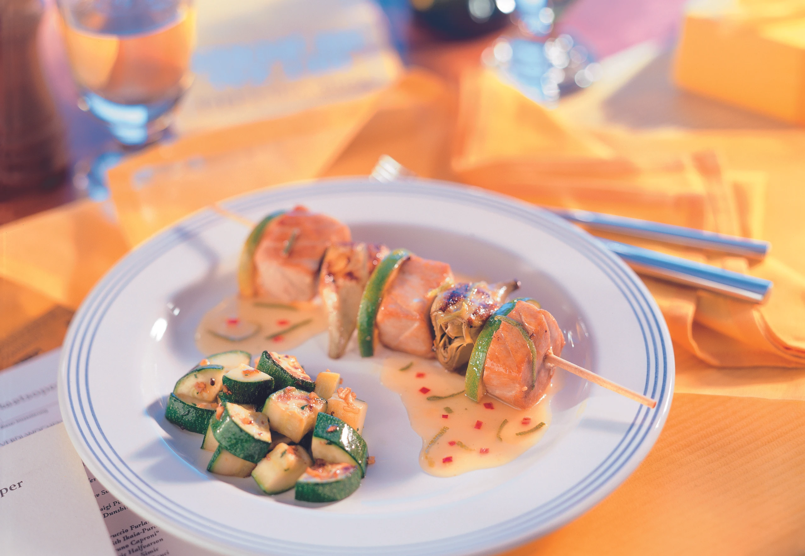 Thunfisch-Artischockenspieße mit Chili-Limettensauce