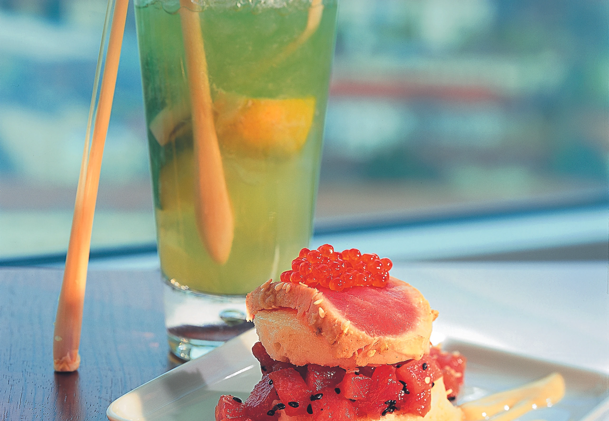 Knödel kurz auskühlen lassen, durchschneiden, mit Tatar füllen und mit Thunfisch-Scheiben belegen. Mit Forellenkaviar dekorieren und mit Senfsauce anrichten.