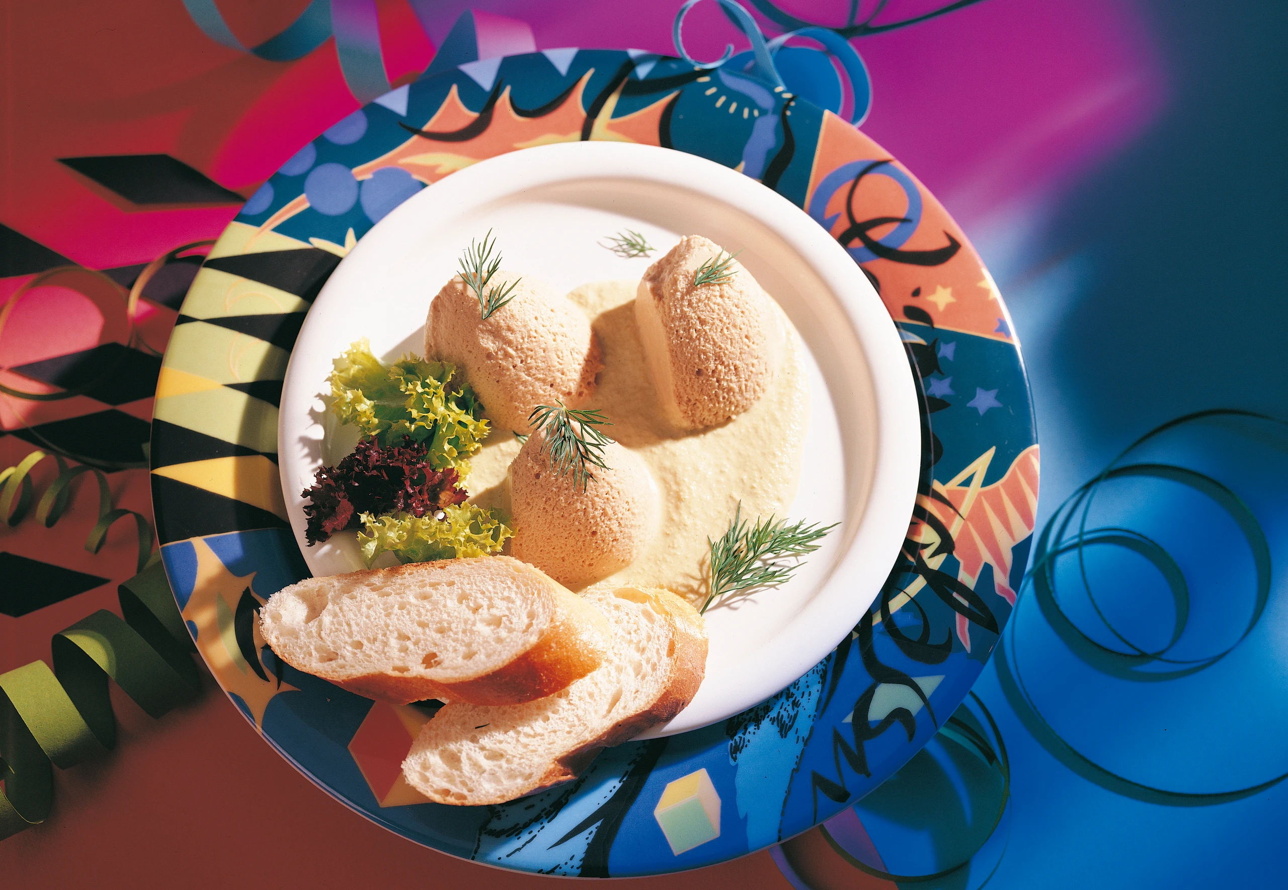 - Aus dem Mus mit einem Löffel Nocken ausstechen, auf Teller setzen und mit Dillzweigen garnieren. Als Beilage serviert man am besten Weißbrot und gemischte Blattsalate.