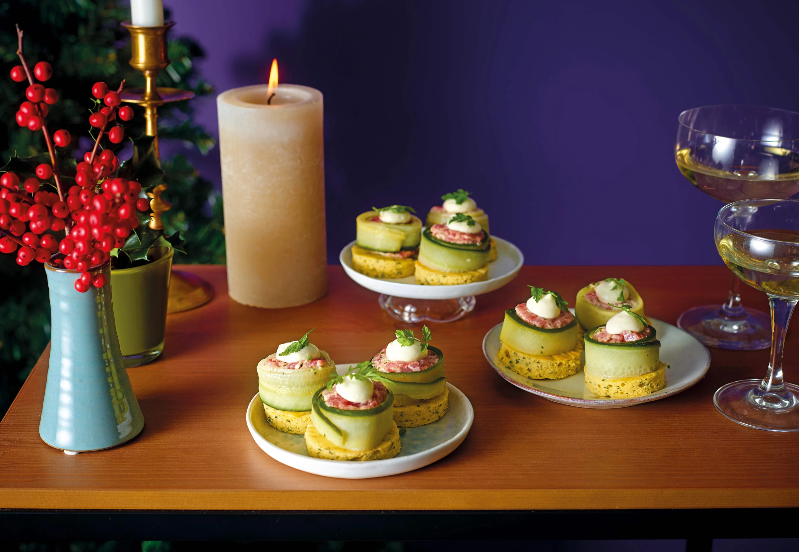 Thunfisch-Tatarröllchen mit gepickelten Gurken