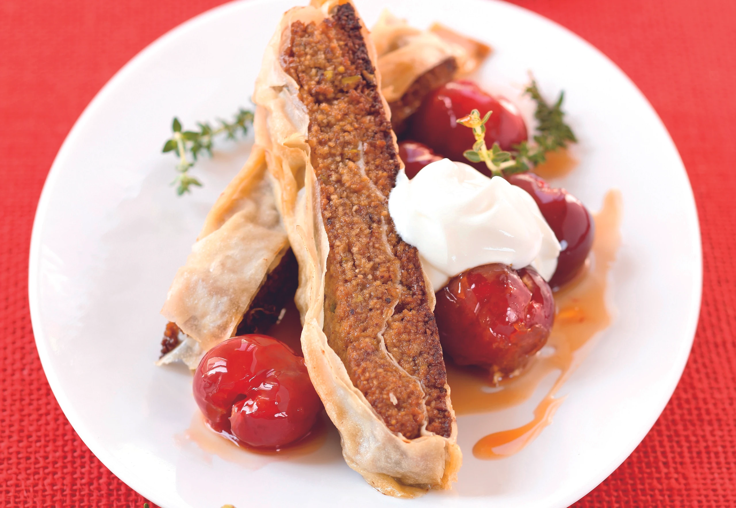 Thymian-Nuss-Schnitte mit Kirschen