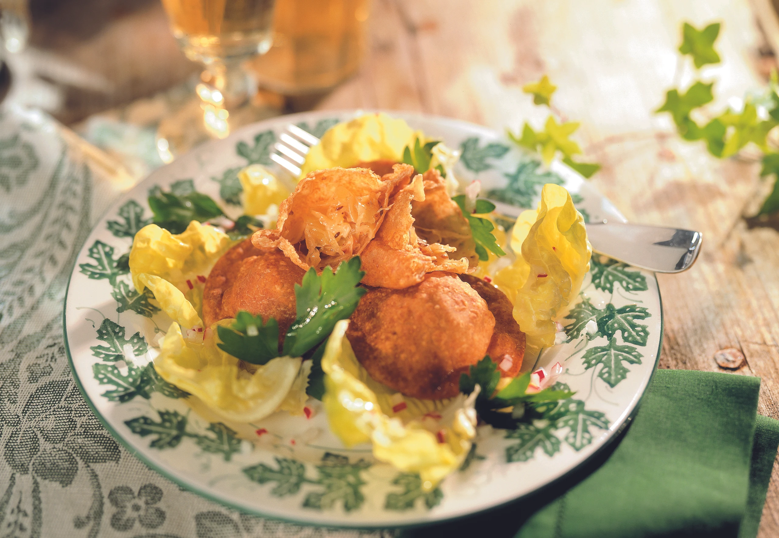 - Ca. 3 Finger hoch Öl erhitzen. Tirtlen darin schwimmend goldgelb backen, herausheben und auf Küchenpapier abtropfen lassen. Tirtlen mit Schnittlauch-Vinaigrette servieren.