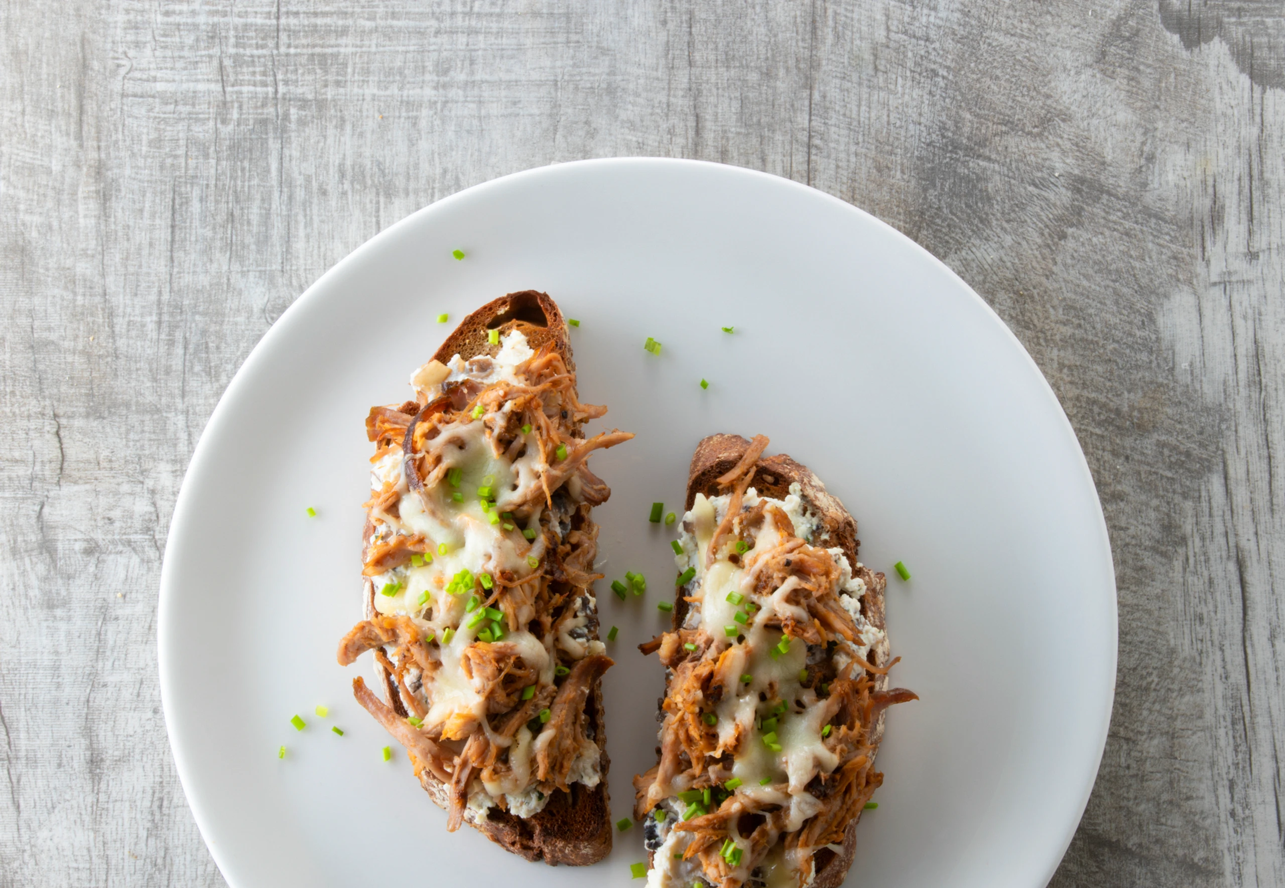 Toasts mit Pulled Pork und Champignon-Ricotta