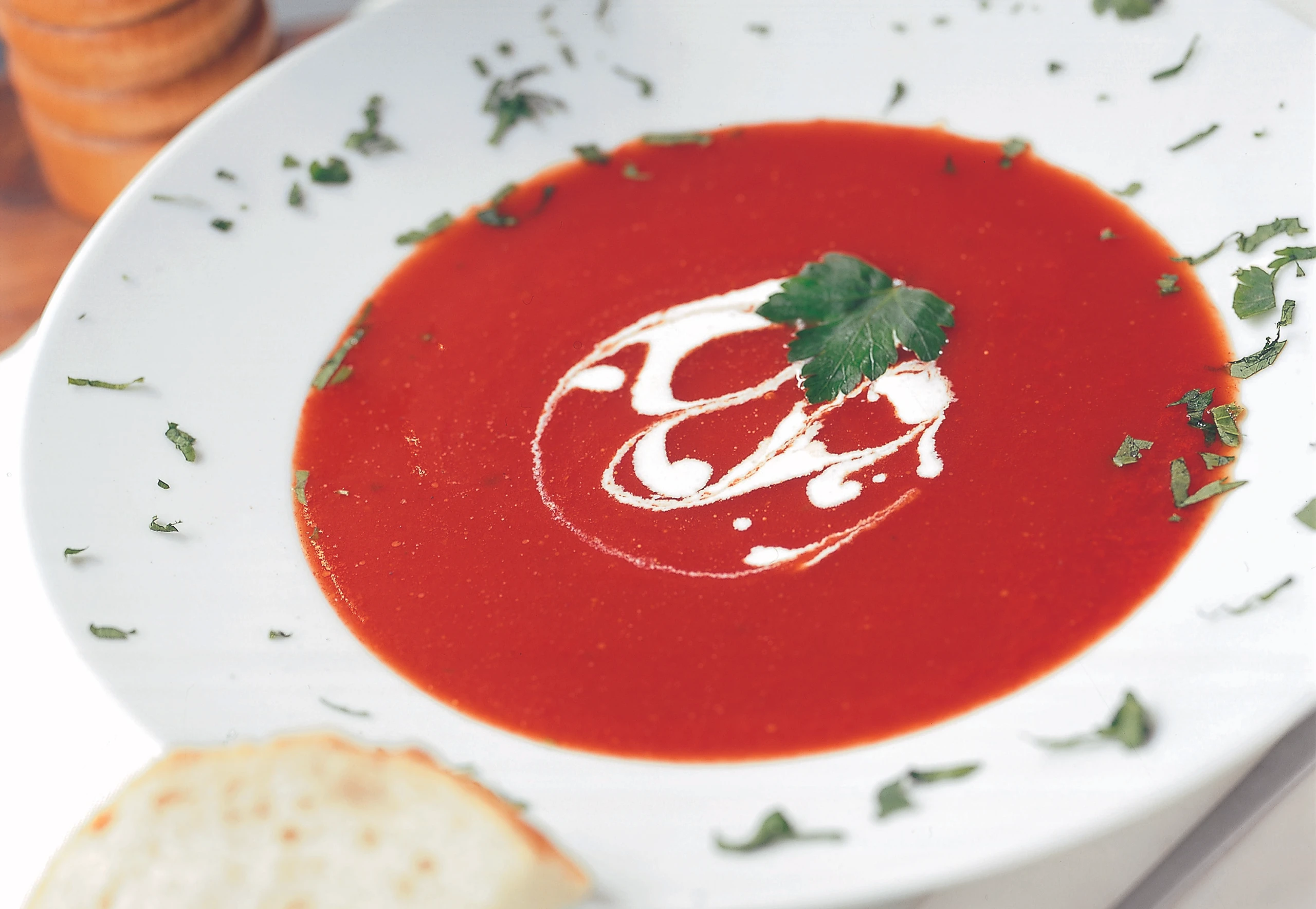 Paradeisansatz passieren, Wasser zugießen, Suppe auf ca. 800 ml einkochen, Obers einrühren. Suppe salzen, anrichten und mit Petersilie bestreuen.