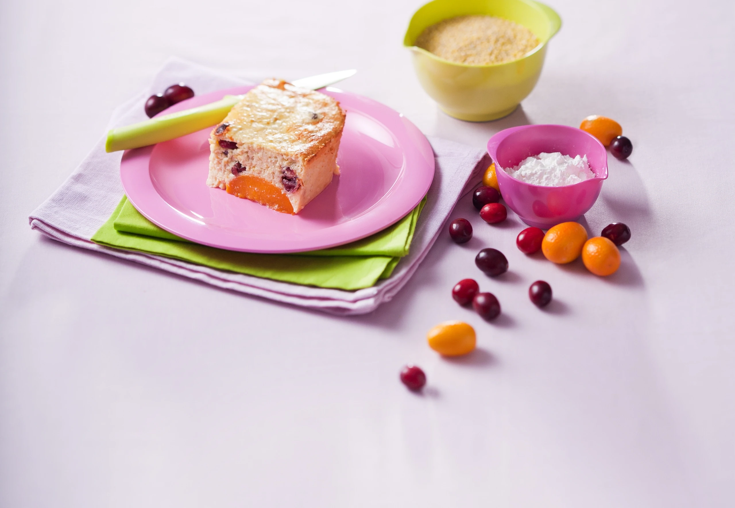 Topfen-Auflauf mit Pfirsichen und Cranberries