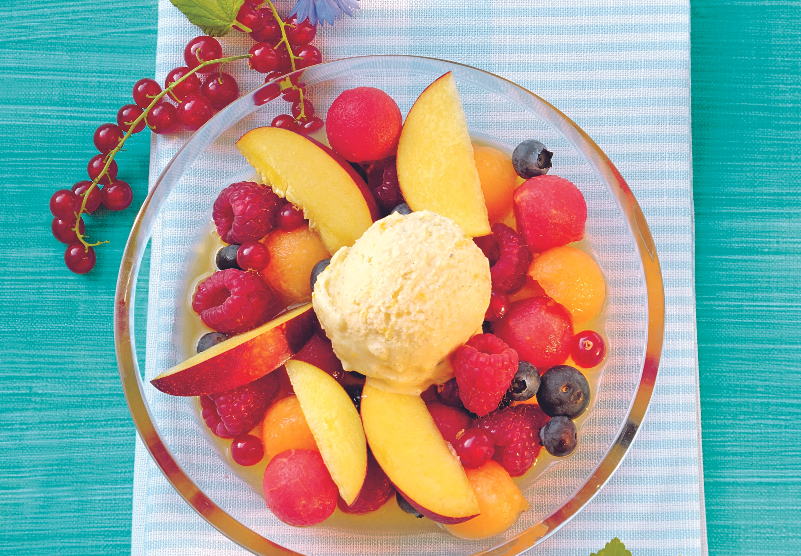 Topfen-Limetteneis mit Sommer-Fruchtsalat