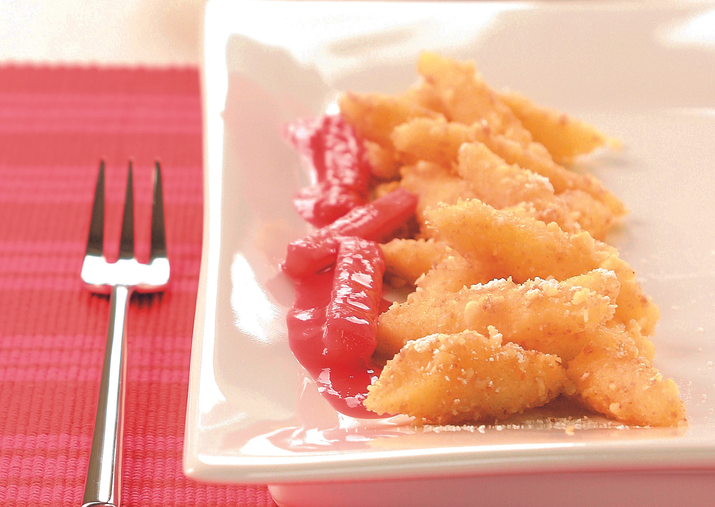 Topfen-Mandelnudeln mit Rhabarber-Ragout