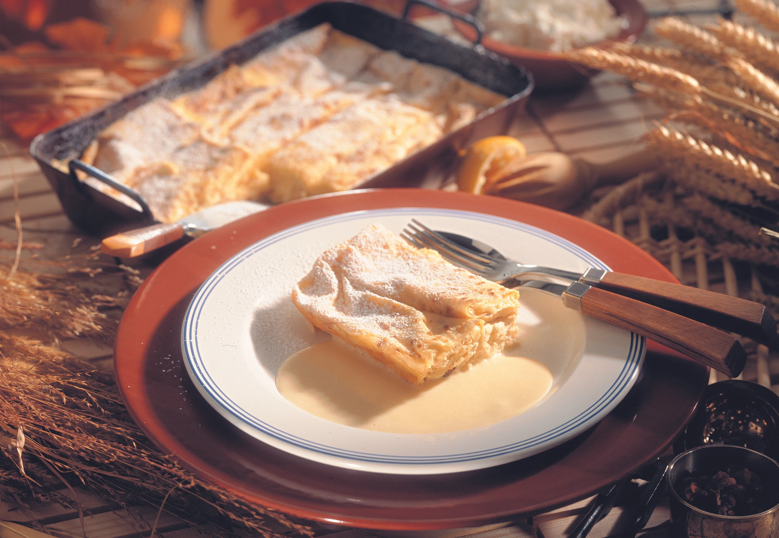 Topfenpalatschinken im vorgeheizten Rohr (mittlere Schiene / Gitterrost) ca. 40 Minuten überbacken. Sollten die Palatschinken zu schnell braun werden, deckt man sie gegen Ende der Garzeit mit Alufolie ab.