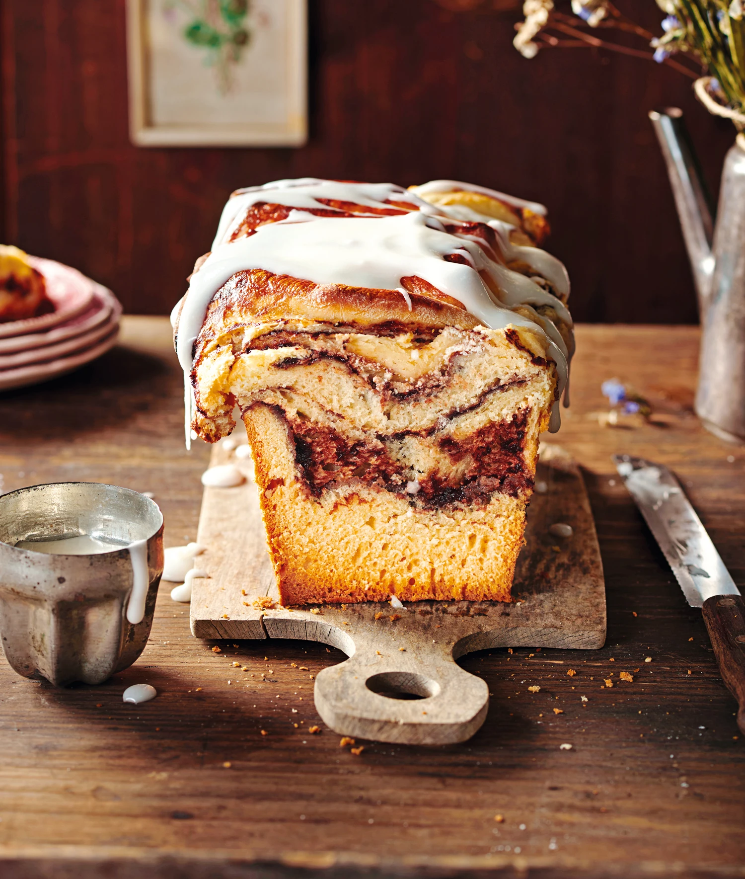 Für die Glasur Zucker und Zitronensaft glatt rühren. Topfenbrot mit der Glasur beträufeln und noch warm servieren.