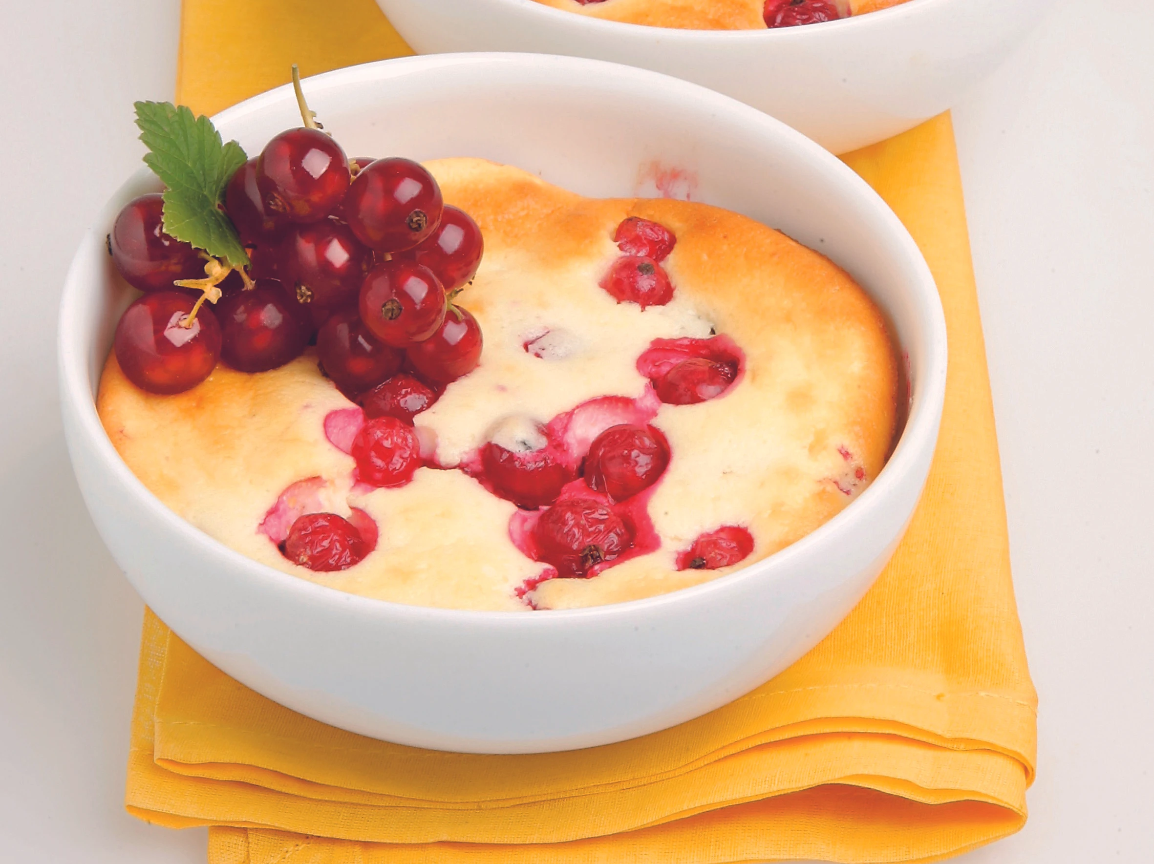 Masse in die Förmchen füllen, mit übrigen Ribiseln bestreuen und im Rohr (mittlere Schiene / Gitterrost) ca. 20 Minuten backen.