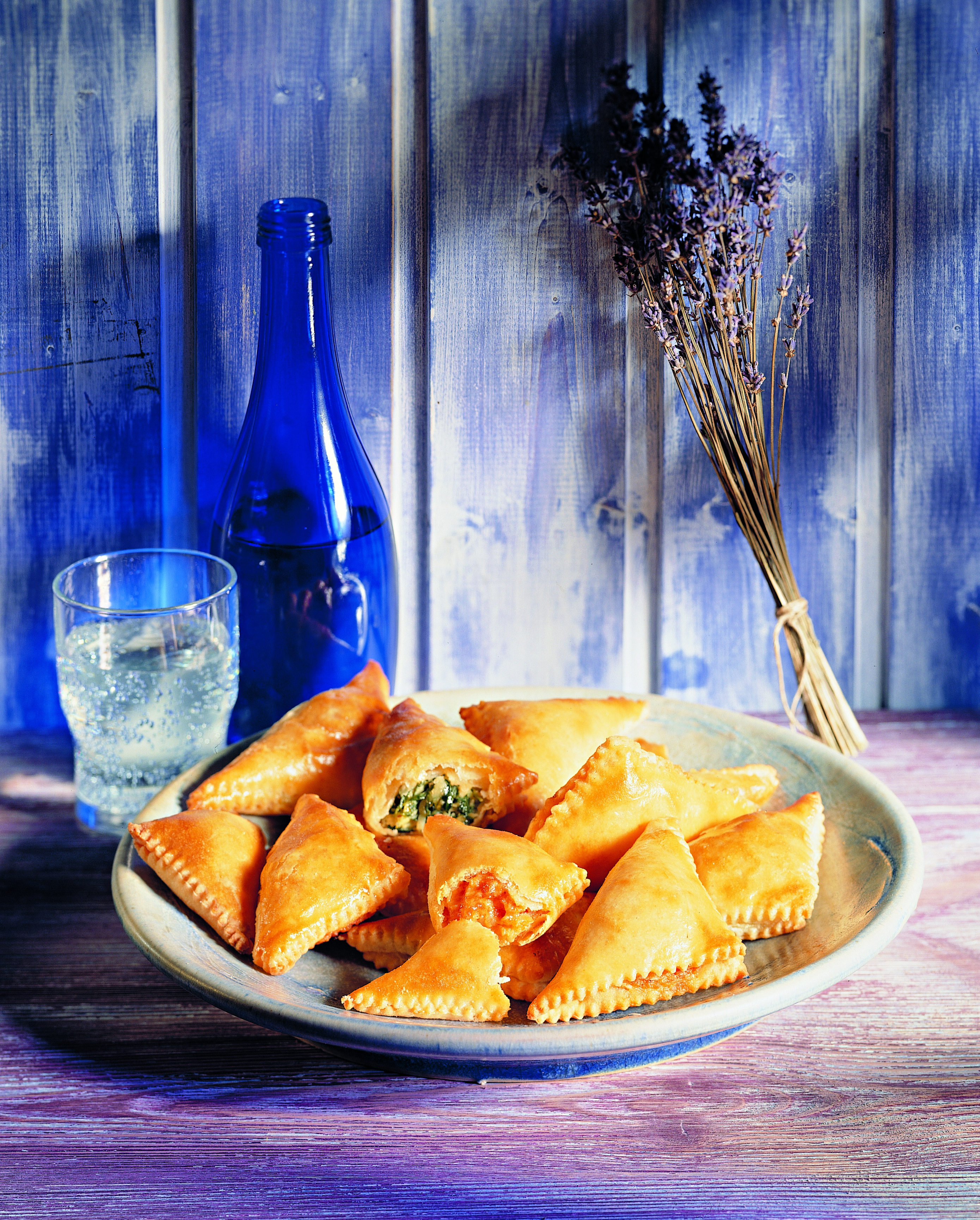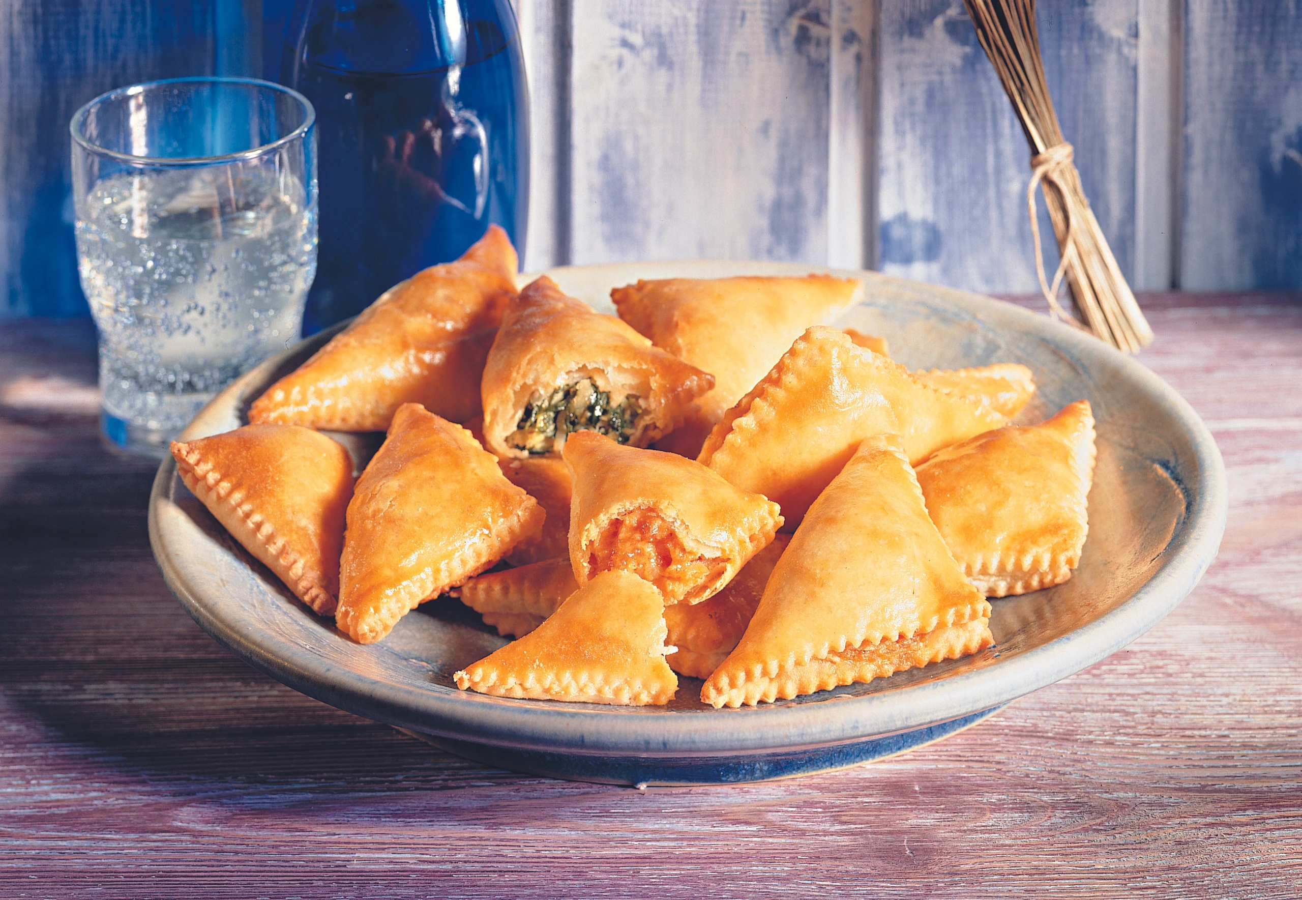 Backrohr auf 180 °C vorheizen. Backblech mit Backpapier belegen. Teig dünn ausrollen und in ca. 12 cm große Quadrate schneiden. Etwas Fülle (siehe Rezepte) in die Mitte setzen.