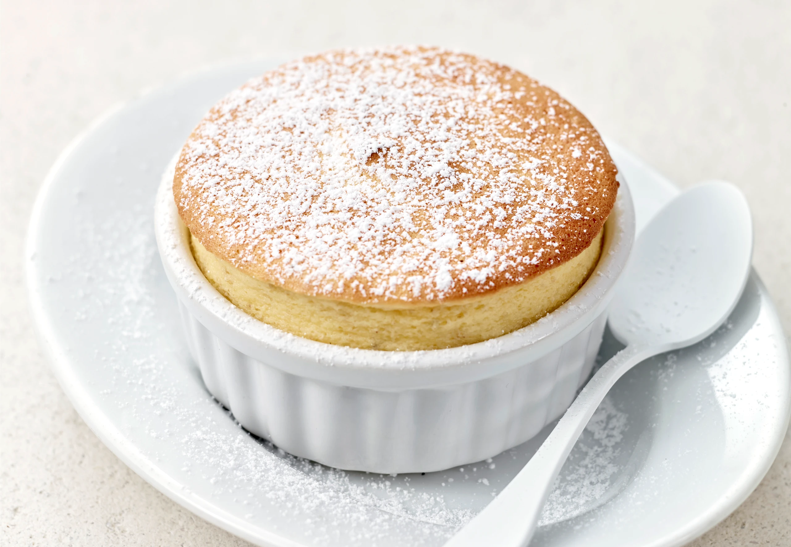 Masse in die Förmchen füllen. Auflaufform bis zur Hälfte mit heißem Wasser füllen, Soufflés im Rohr (untere Schiene / Gitterrost) ca. 25 Minuten backen. Aus dem Rohr nehmen und mit Staubzucker bestreut servieren.
