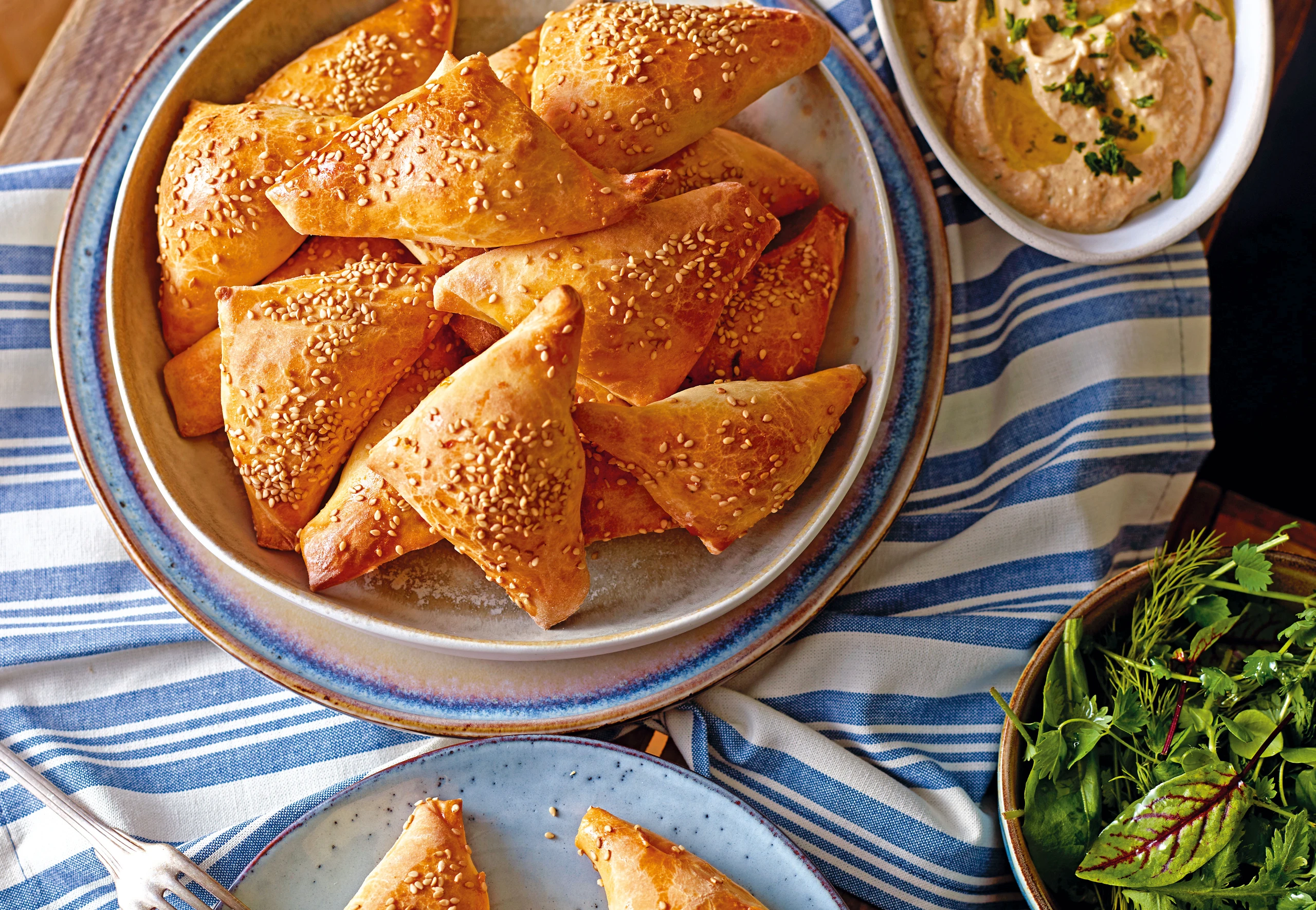 Je ca. 20 g der Fülle in die Mitte der Teigstücke legen, Ränder mit Ei bestreichen und diagonal zusammenklappen. An den Rändern zusammendrücken. Tascherl auf das Backblech geben, mit Ei bestreichen und mit Sesam bestreuen. Im Rohr ca. 30 Minuten backen.