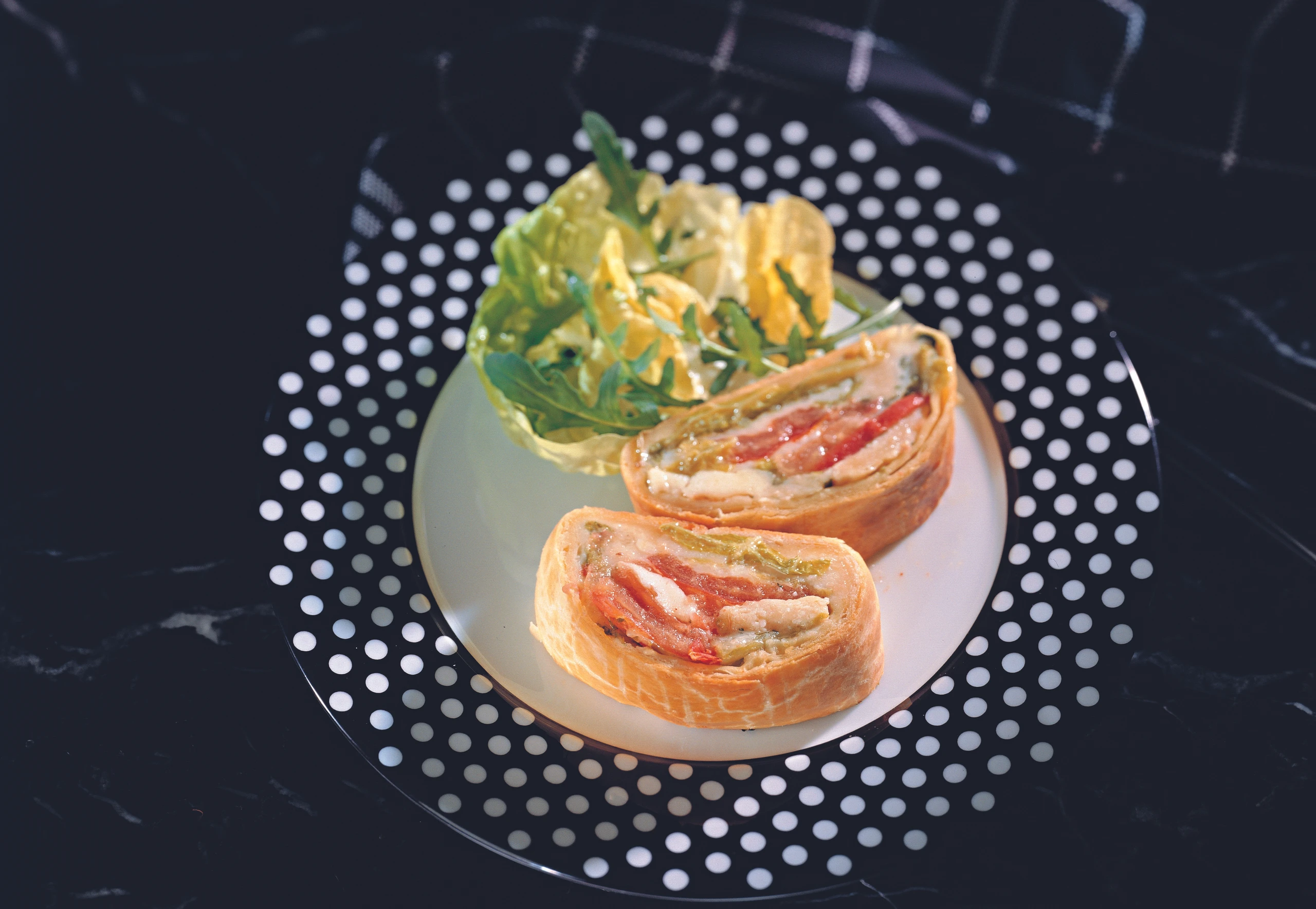 Topfenteigstrudel mit Paradeiser-Kohl-Mozzarella-Fülle