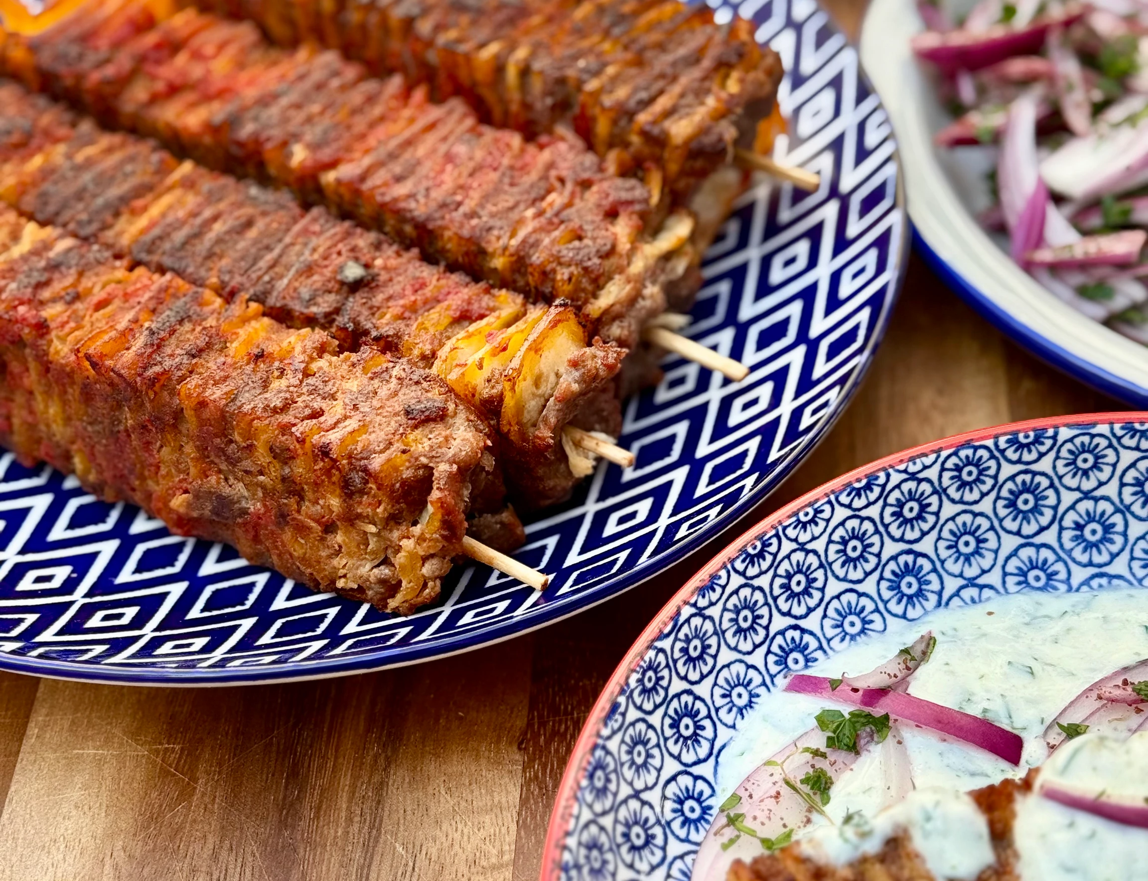 - Joghurt mit Knoblauch, Petersilie, 1 EL Olivenöl und Salz verrühren.Spieße mit Sauce und fein geschnittener roter Zwiebel anrichten.Tipp: Zwiebeln mit Sumach bestreuen für einen frischen Extra-Kick.