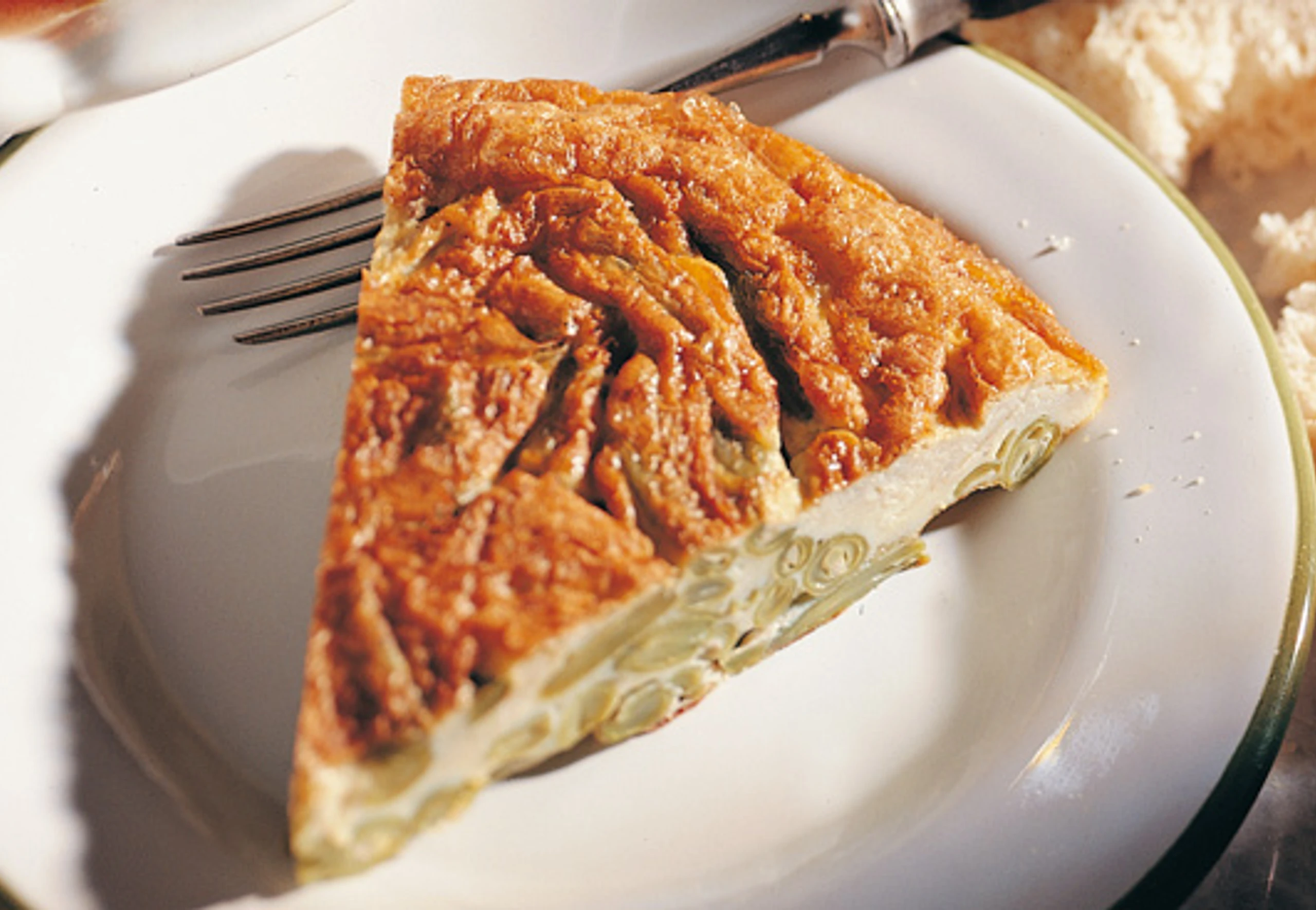- Zum Wenden der Tortilla einen Teller auf die Pfanne legen. Teller mit der Hand festhalten, Pfanne umdrehen und die Tortilla auf den Teller stürzen.
