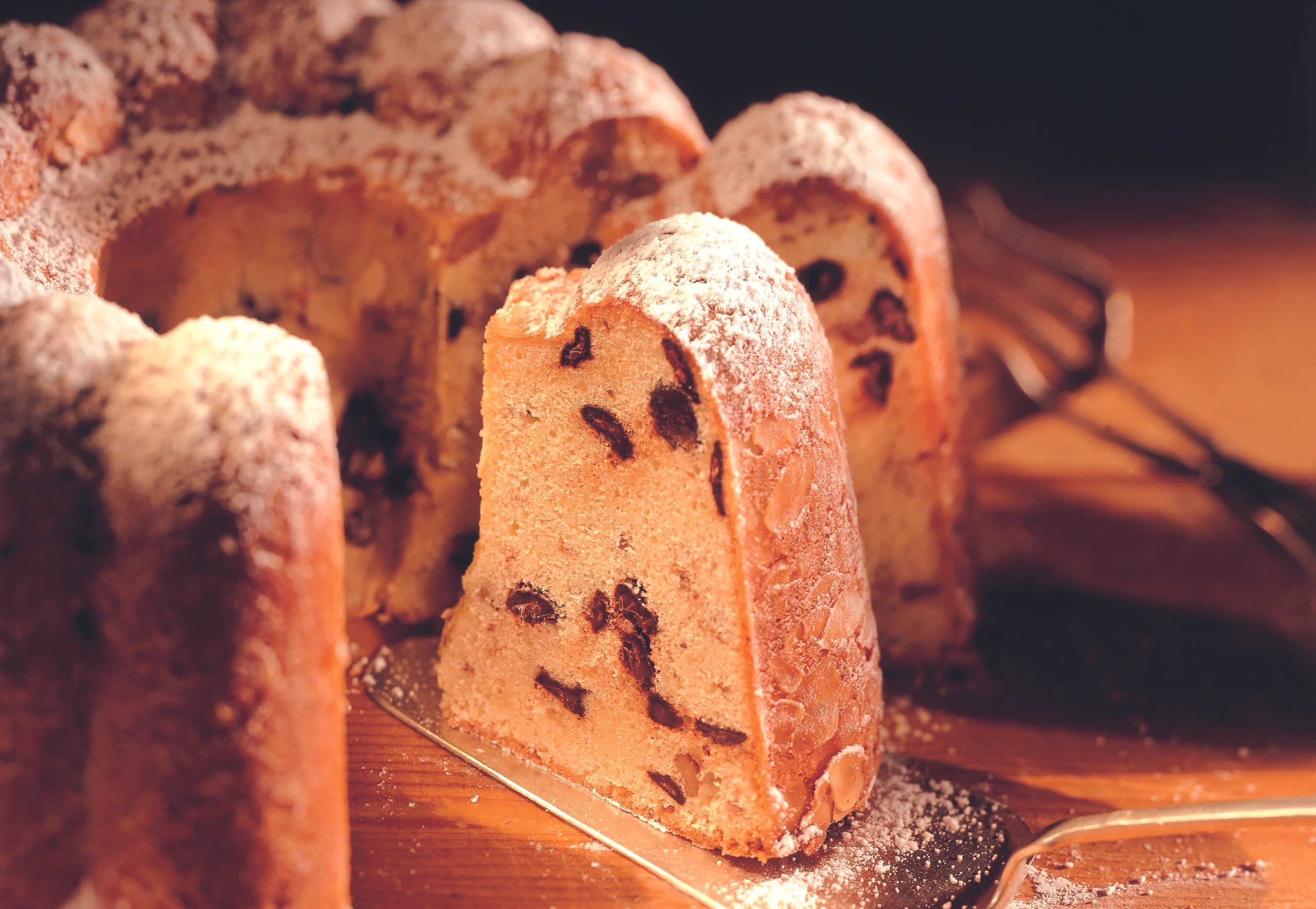 Gugelhupf aus dem Rohr nehmen, ca. 5 Minuten rasten lassen, dann aus der Form stürzen und auskühlen lassen. Gugelhupf vor dem Servieren mit Staubzucker bestreuen.