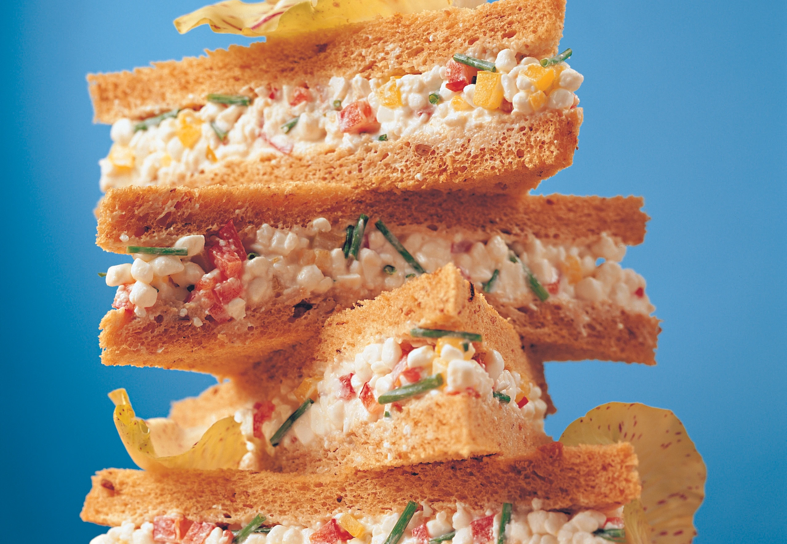 - Paprika putzen und klein schneiden. Schnittlauch schneiden. Cottage Cheese mit Paprika, Schnittlauch, Salz, Pfeffer und einigen Tropfen Zitronensaft verrühren.
