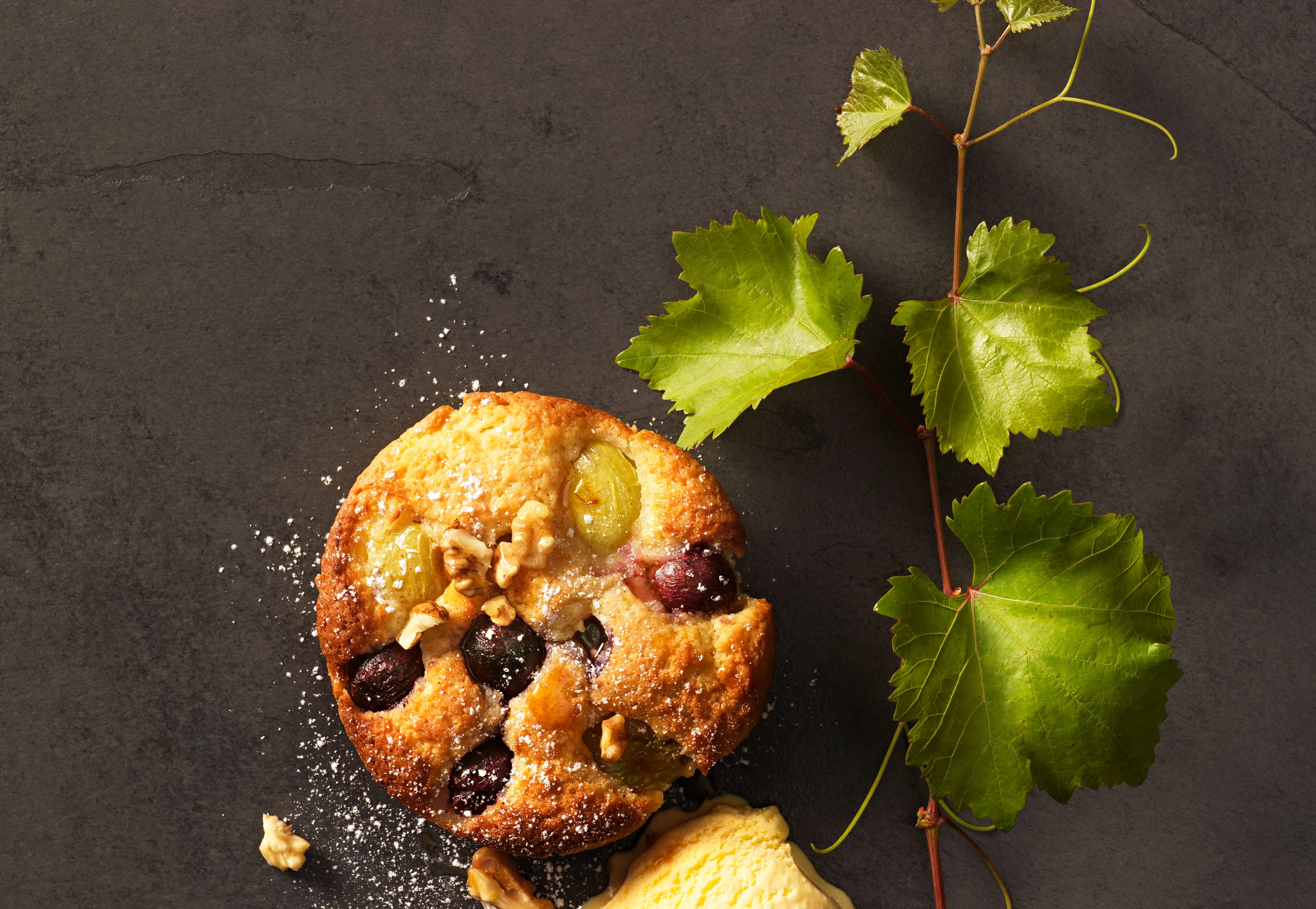 - Mehl mit Backpulver vermengen. Dotter, Zucker, Rum, Crème fraîche und Öl untermischen, Trauben unterheben. Masse in die Förmchen füllen und im Rohr (mittlere Schiene / Gitterrost) ca.25 Minuten backen.