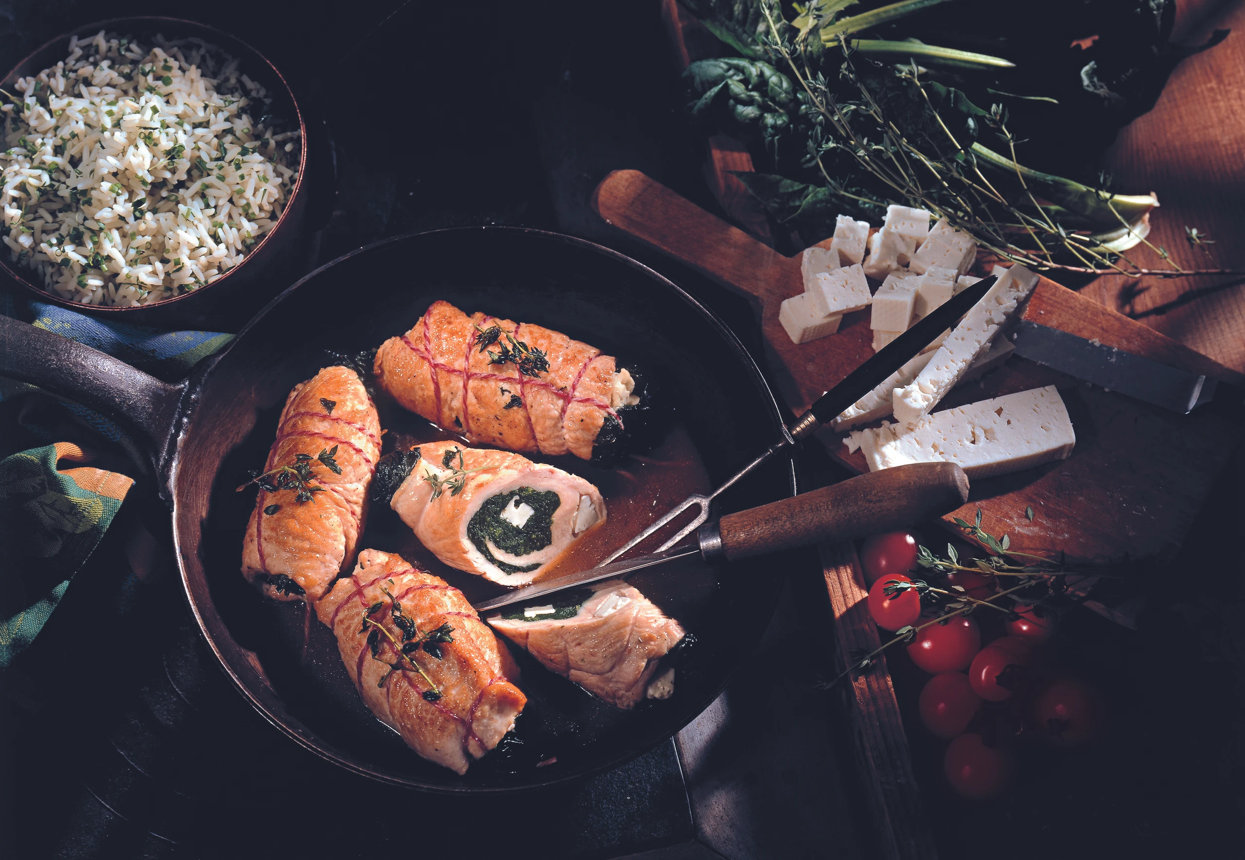 Truthahnrouladen mit Blattspinat und Schafkäse
