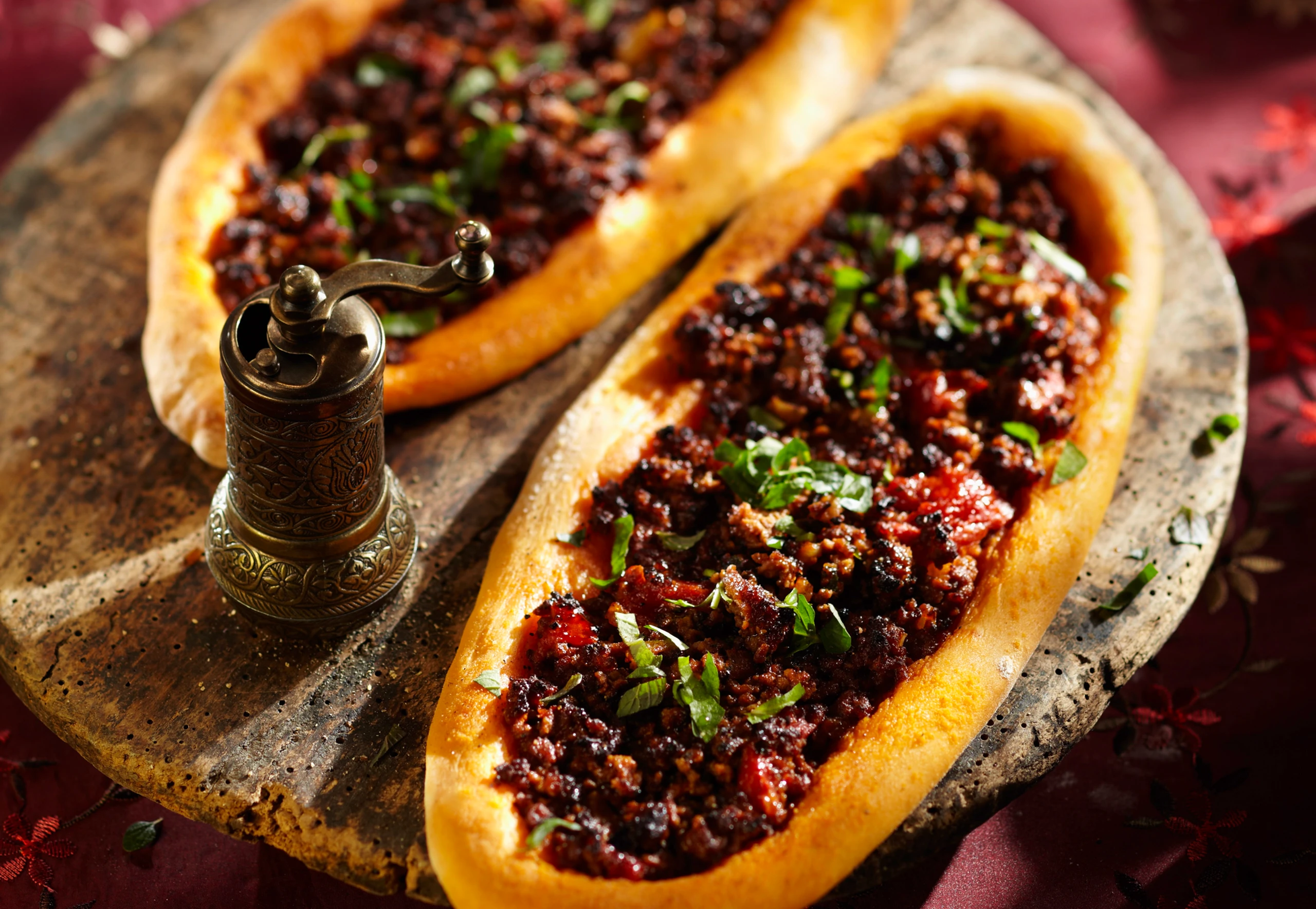 Lahmacun auf die Backbleche legen und im Rohr (untere Schiene) in 2 Arbeitsgängen ca. 15 Minuten backen. Lahmacun mit Minze bestreut servieren.