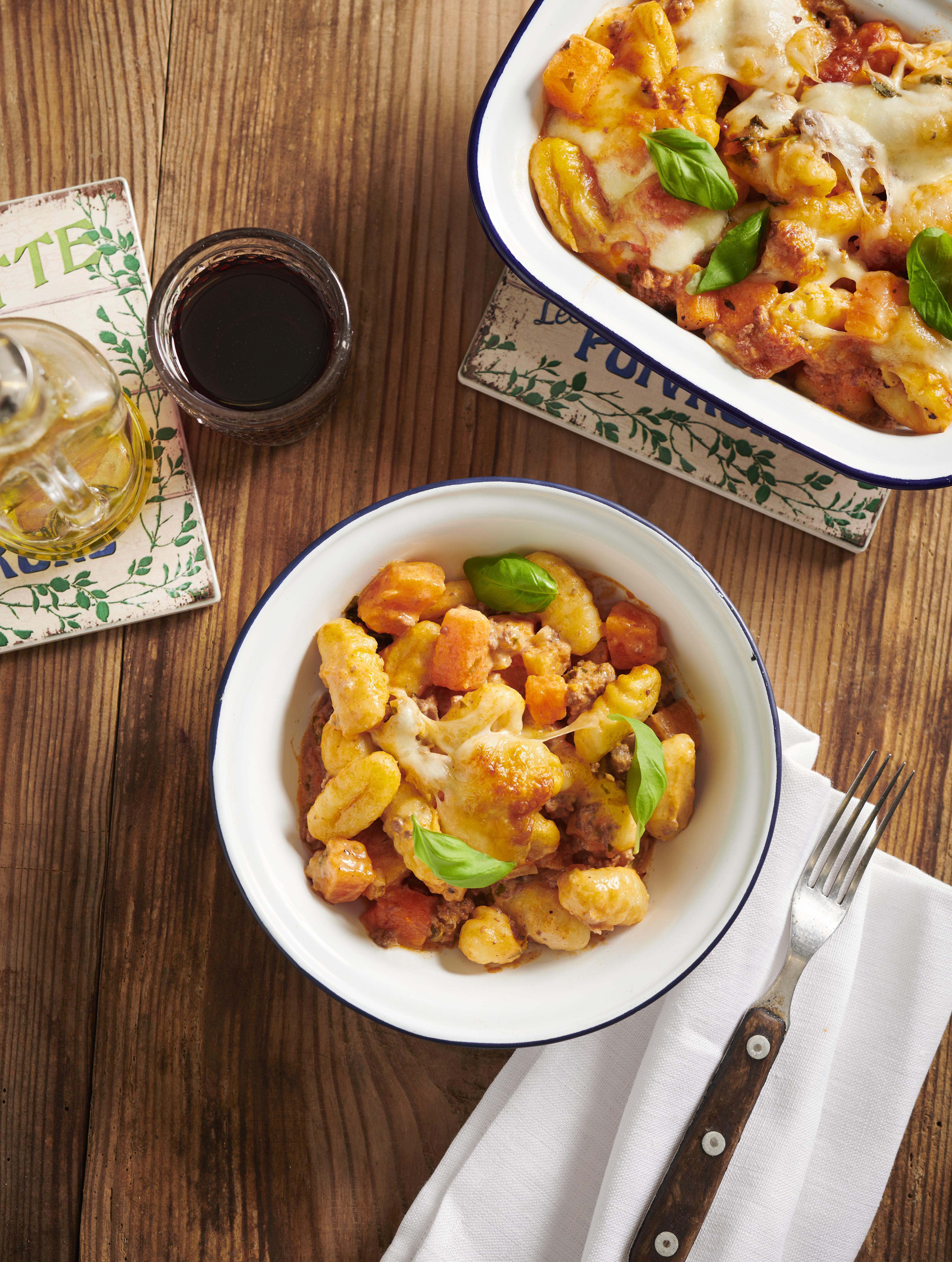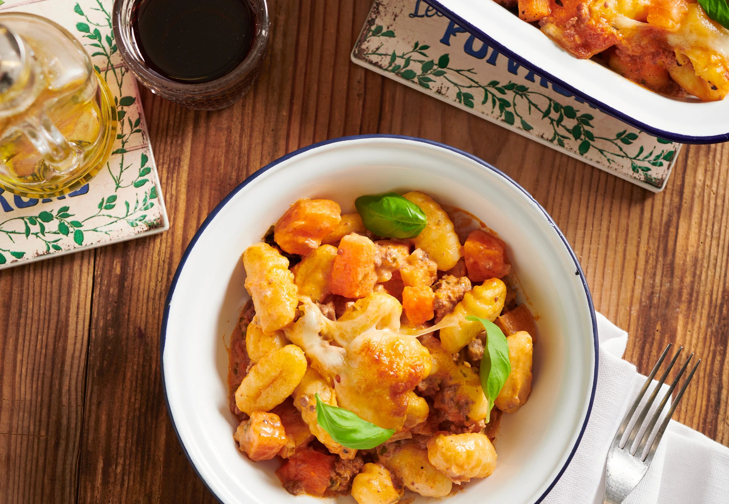 Überbackene Gnocchi mit Faschiertem und Kürbis