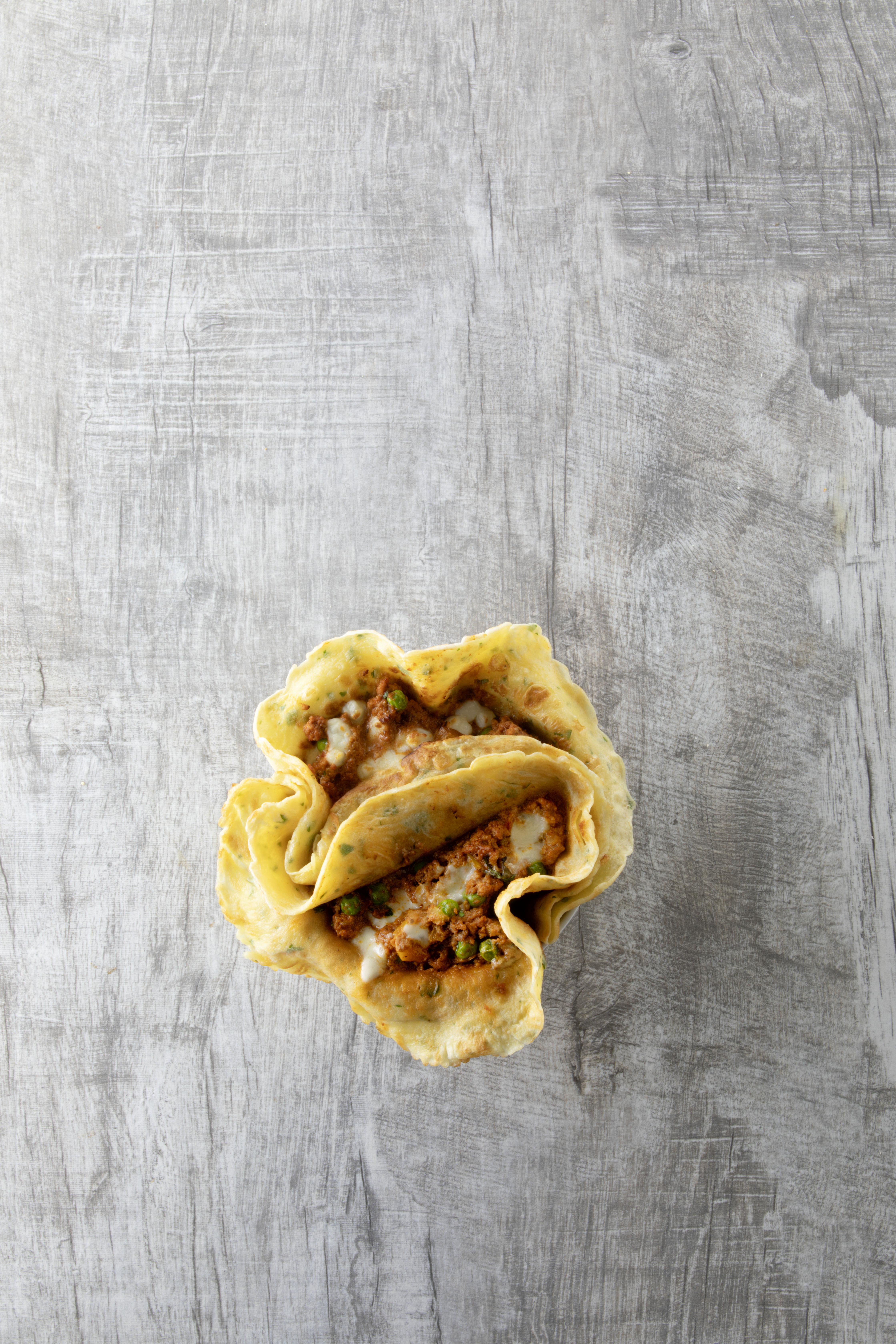 Für die Fülle Paprika trockentupfen und möglichst klein schneiden. Paprika und Erbsen im Öl anrösten. Sauce Bolognese und Topfen einrühren und erhitzen. Fülle mit Salz und Pfeffer würzen. Mozzarella trockentupfen und klein würfeln.