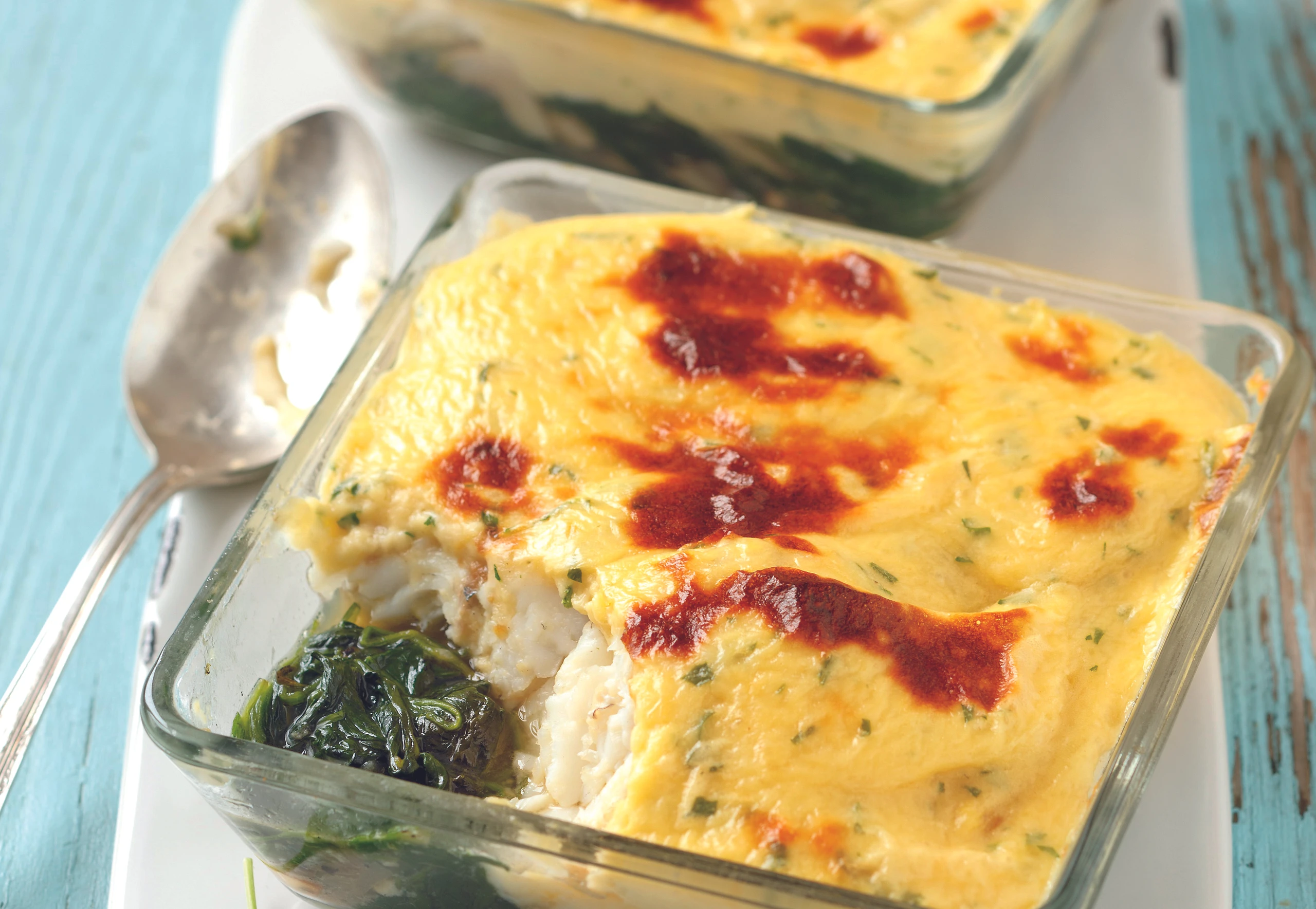 Rohr auf Grillstellung vorheizen. Zwei Auflaufformen (14 x 14 x 4 cm) mit Butter ausstreichen und den Spinat einfüllen. Spinat mit der Hälfte von den Filets belegen und mit ein wenig von der Sauce bestreichen. Übrige Filets einlegen und mit restlicher Sauce bedecken. Filets mit Bröseln bestreuen und im Rohr (mittlere Schiene / Gitterrost) goldbraun überbacken.