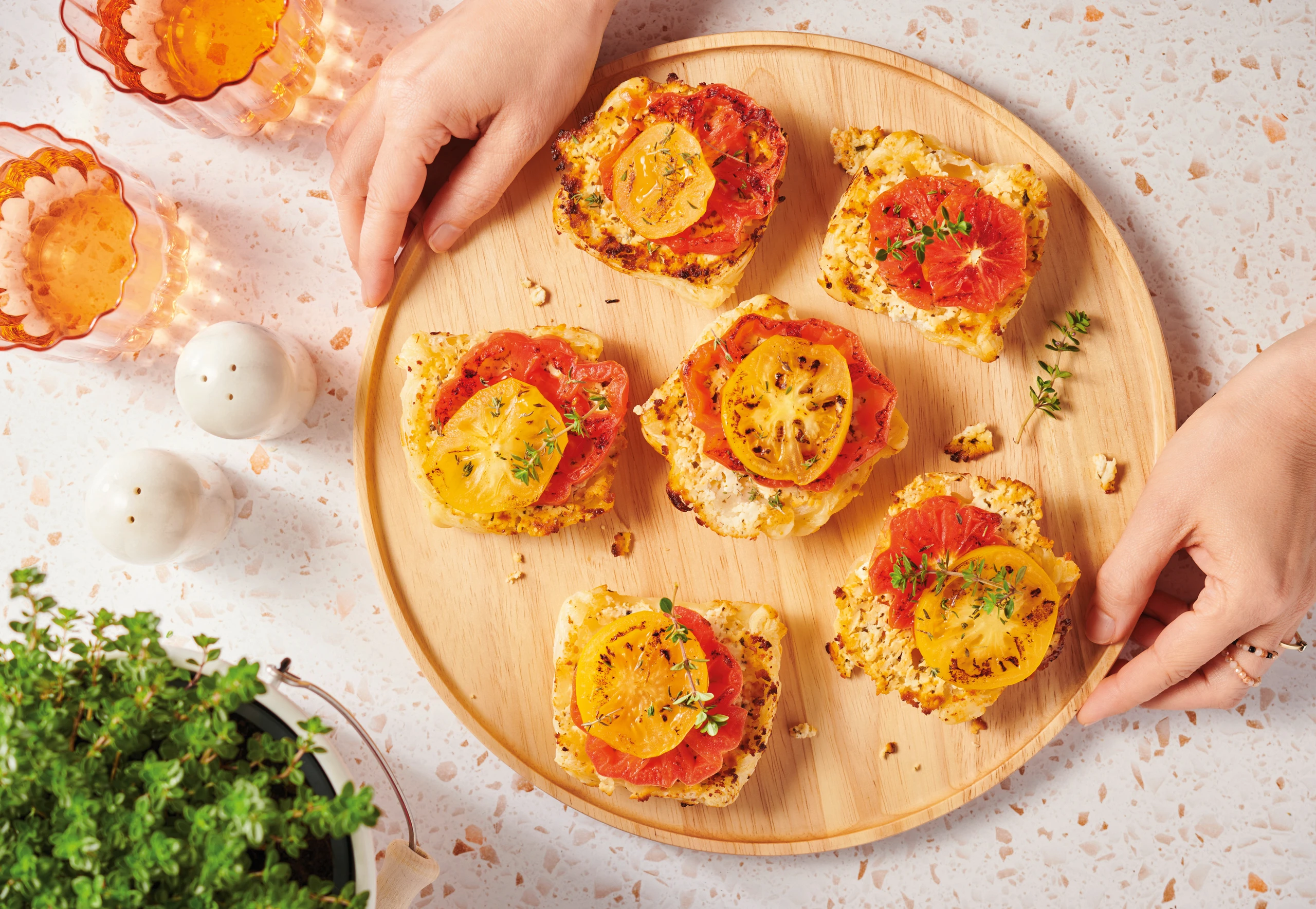 Upside down Käse-Harissa-Tarts mit Paradeisern