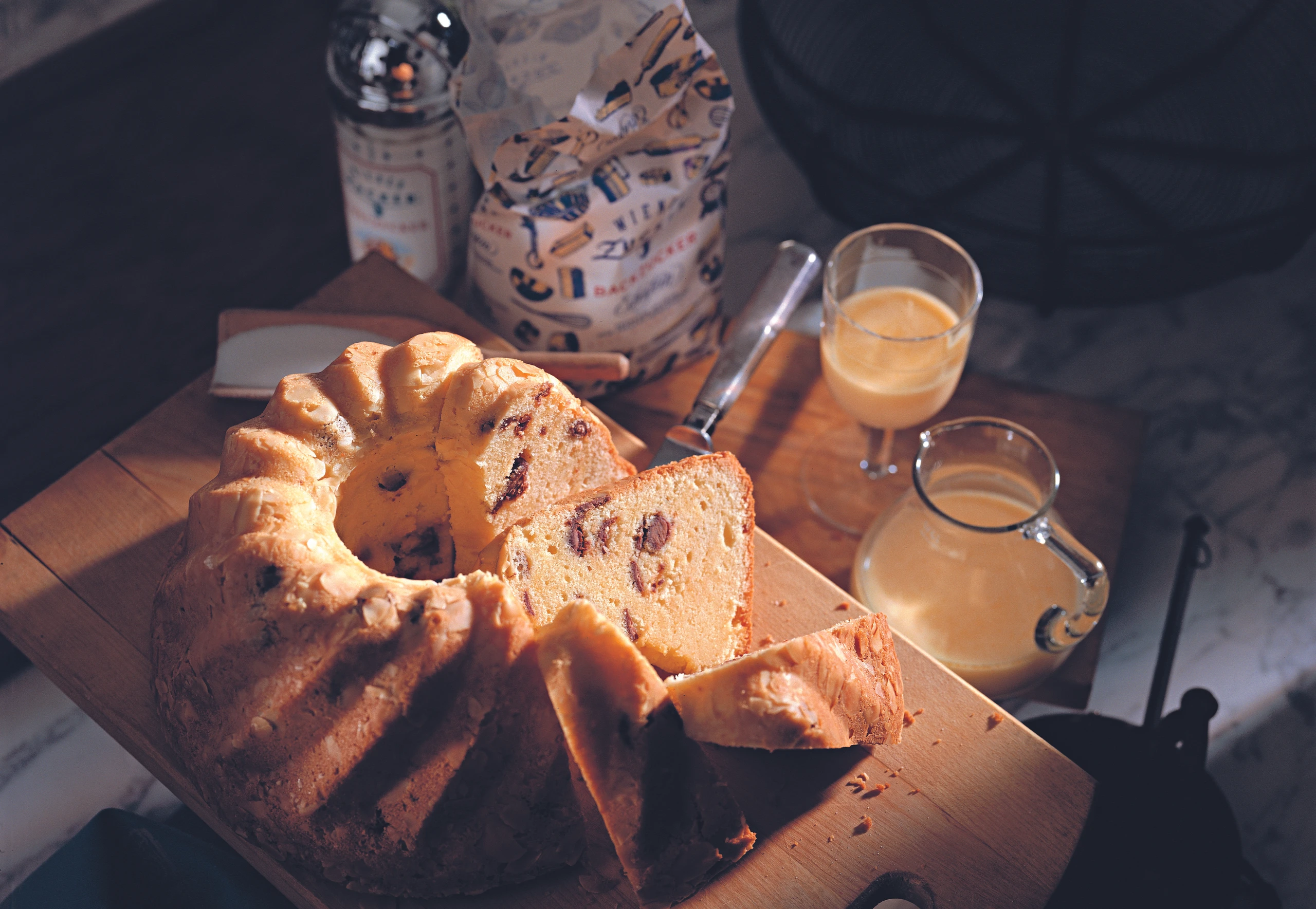 Gugelhupf aus dem Rohr nehmen, 5 Minuten stehen lassen, stürzen und in der Form auskühlen lassen.