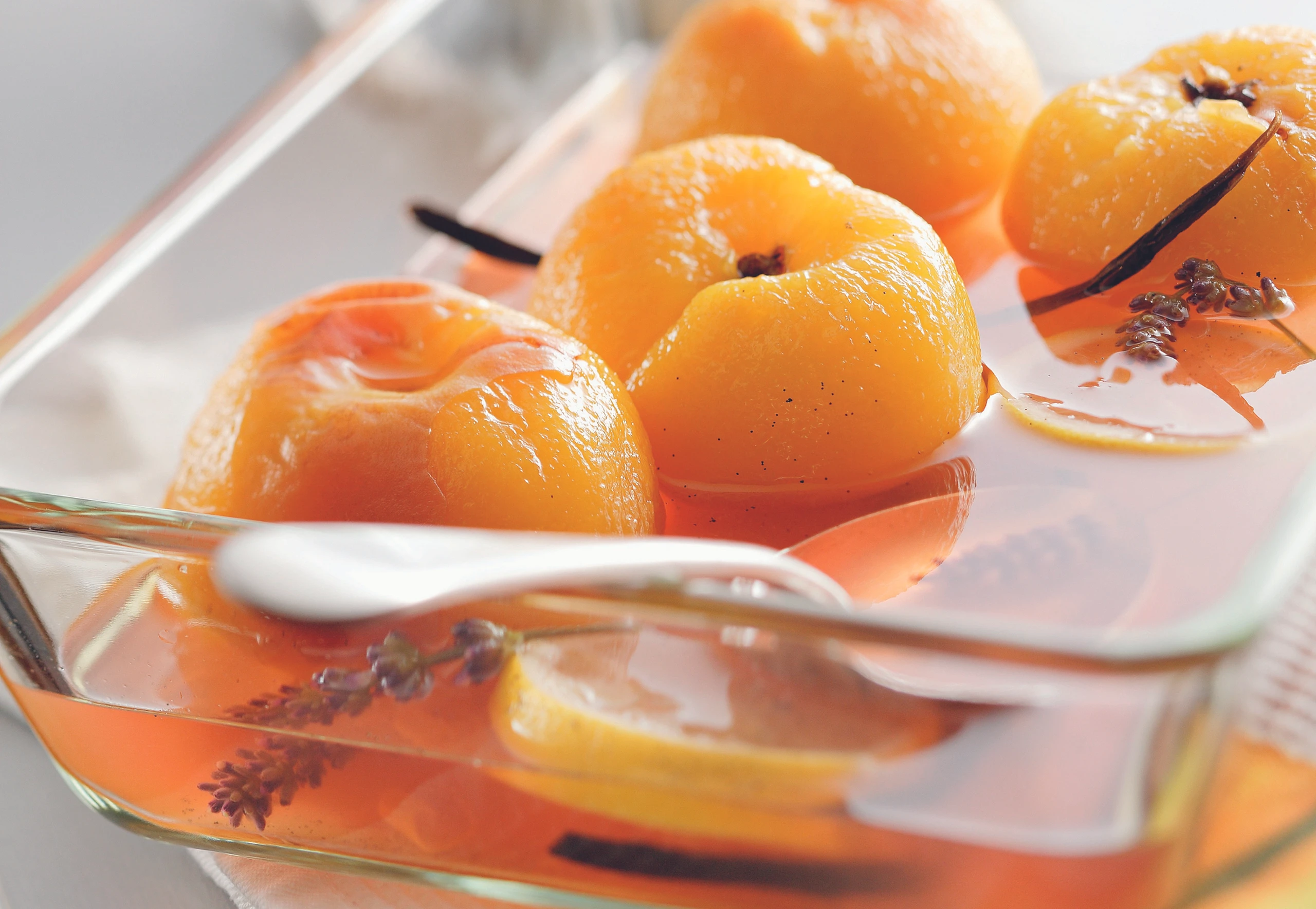 - Vanilleschoten längs halbieren, Mark mit einem kleinen Messer herauskratzen. Zitrone in ca. 0,5 cm dicke Scheiben schneiden. Weißwein mit 500 ml Wasser, Vanillemark, Thymian und Zit-ronenscheiben aufkochen. Pfirsiche einlegen und bei schwacher Hitze ca. 20 Minuten köcheln. Topf vom Herd nehmen, Pfirsiche im Kochfond ca. 8 Stunden ziehen lassen.