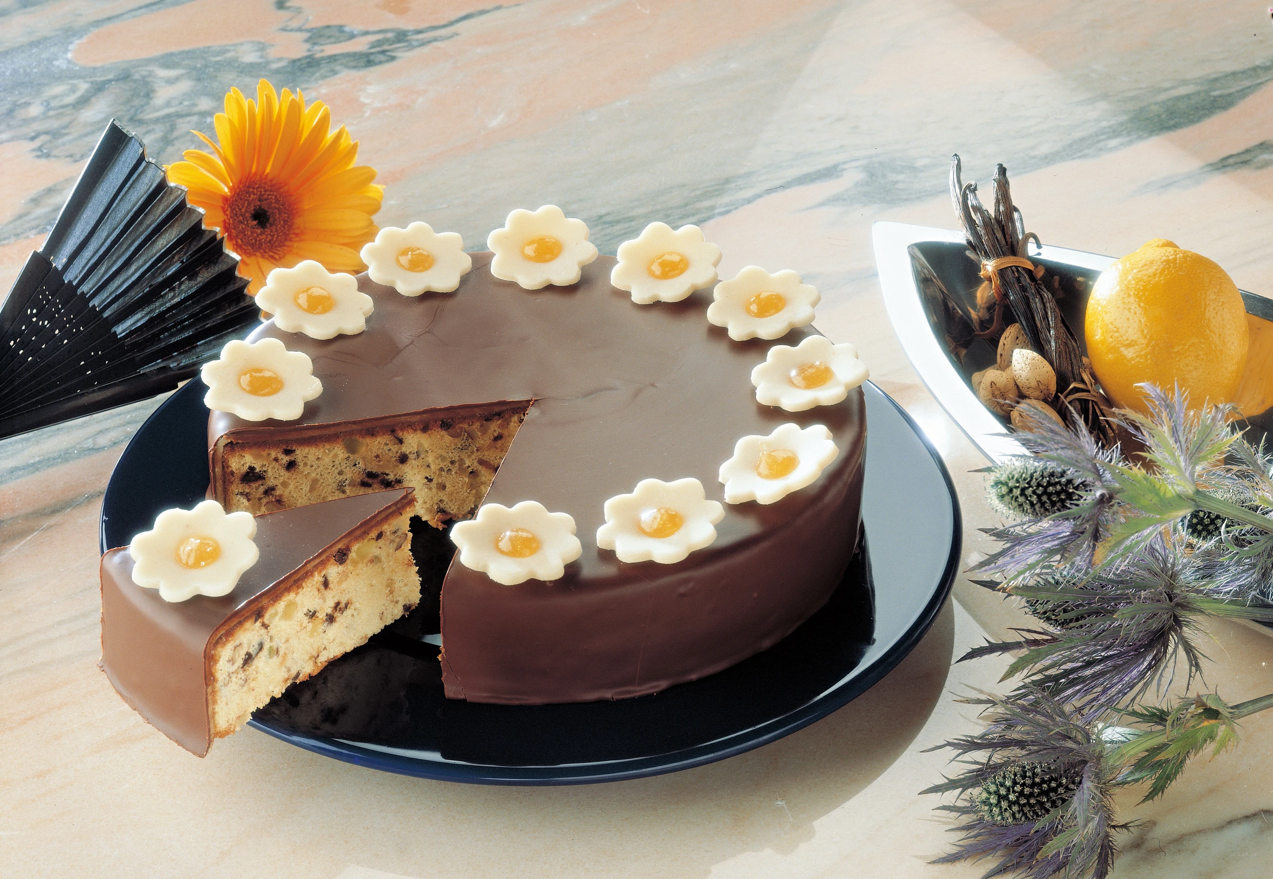 Rohmarzipan mit feinst gesiebtem Staubzucker und Honig gut verkneten. Masse auf einer Arbeitsfläche 1/2 cm dick ausrollen und mit einem gewellten Ausstecher 12 Scheiben (Ø ca. 4 cm) ausstechen. Scheiben auf eine weiche Unterlage legen (z. B. ein mehrmals gefaltetes Küchentuch) und jeweils in der Mitte mit einem Kochlöffelstiel eine Vertiefung drücken. Marillenmarmelade gut verrühren und in jede Vertiefung einen Tupfer Marmelade füllen.Torte mit den Blüten dekorieren.