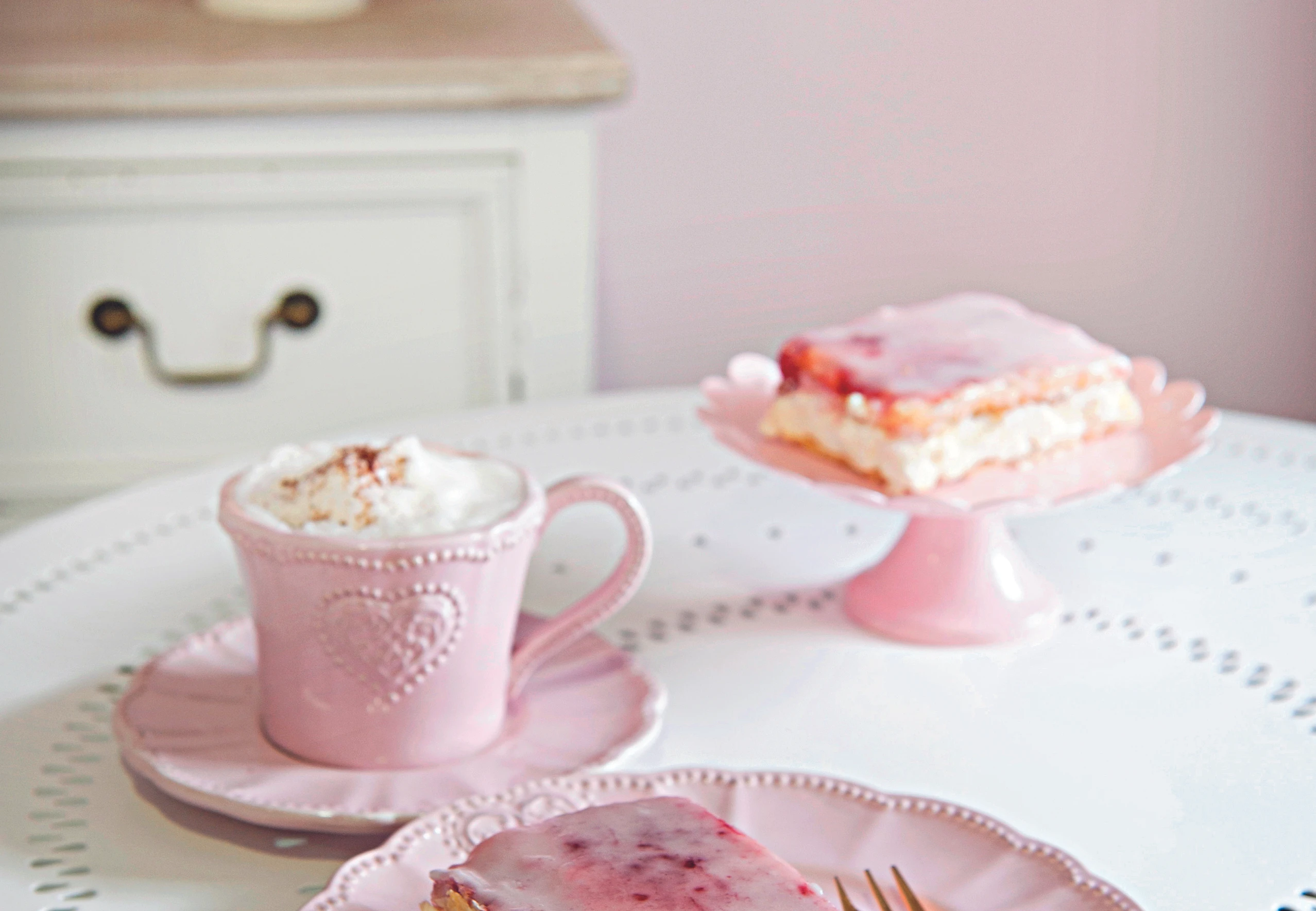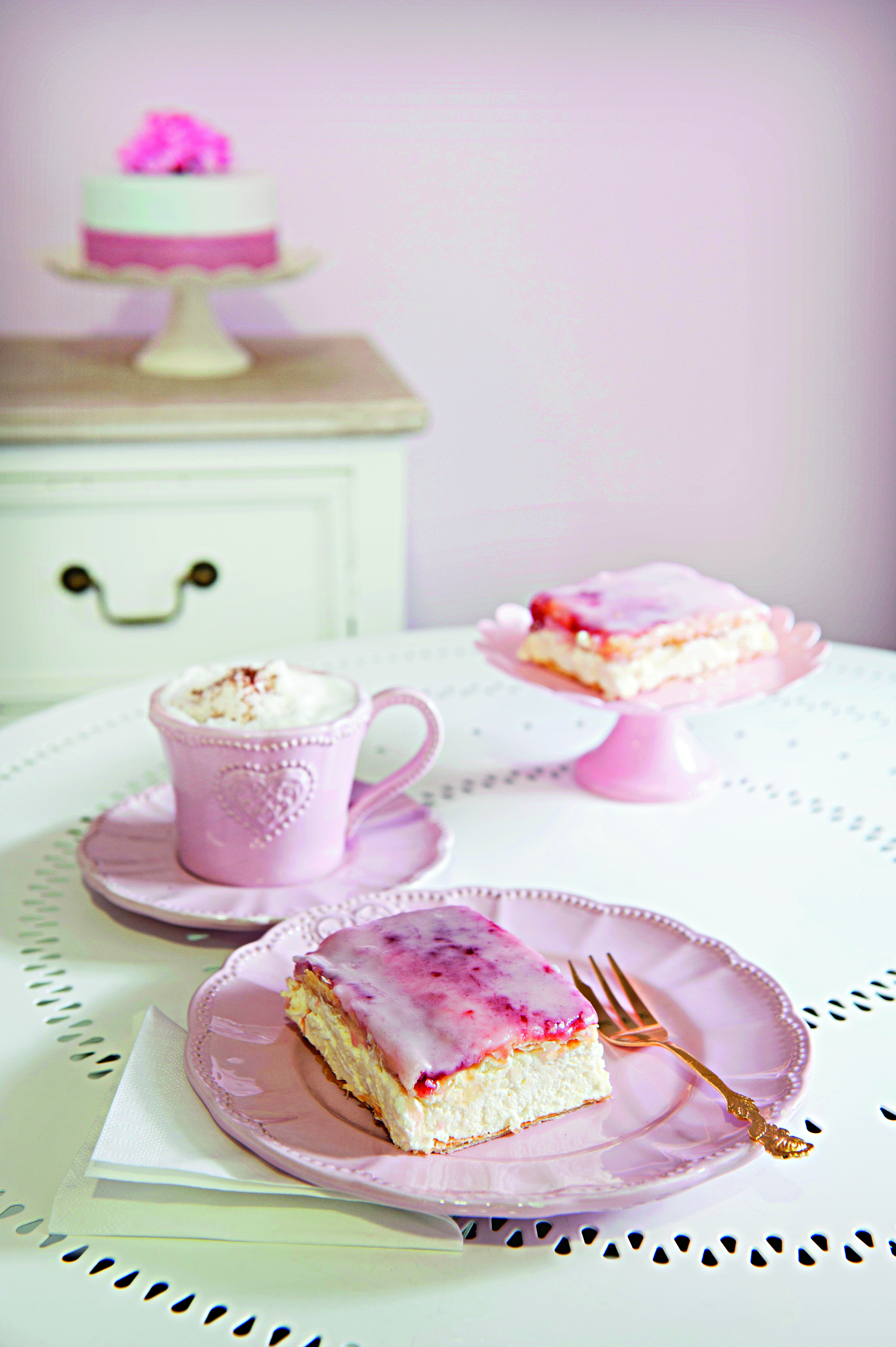 Marmelade erhitzen und die Schnitte damit dünn bestreichen. Staubzucker mit Wasser glatt rühren und die Schnitte damit glasieren. Cremeschnitte für ca. 1 Stunde kühl stellen.