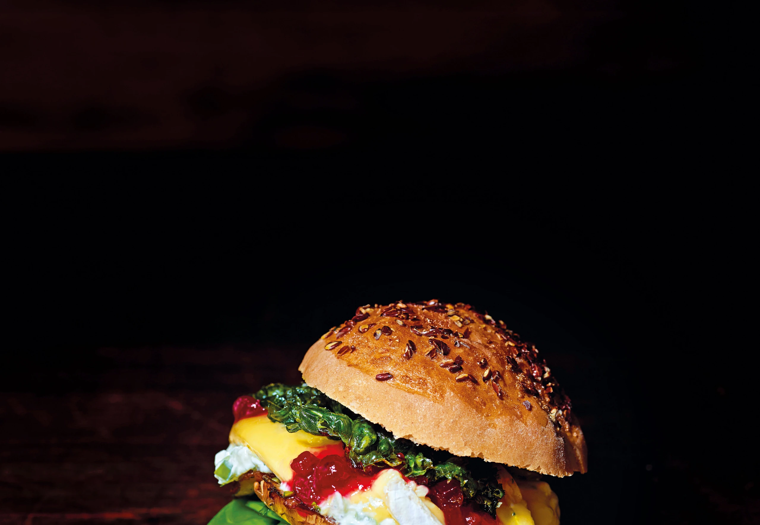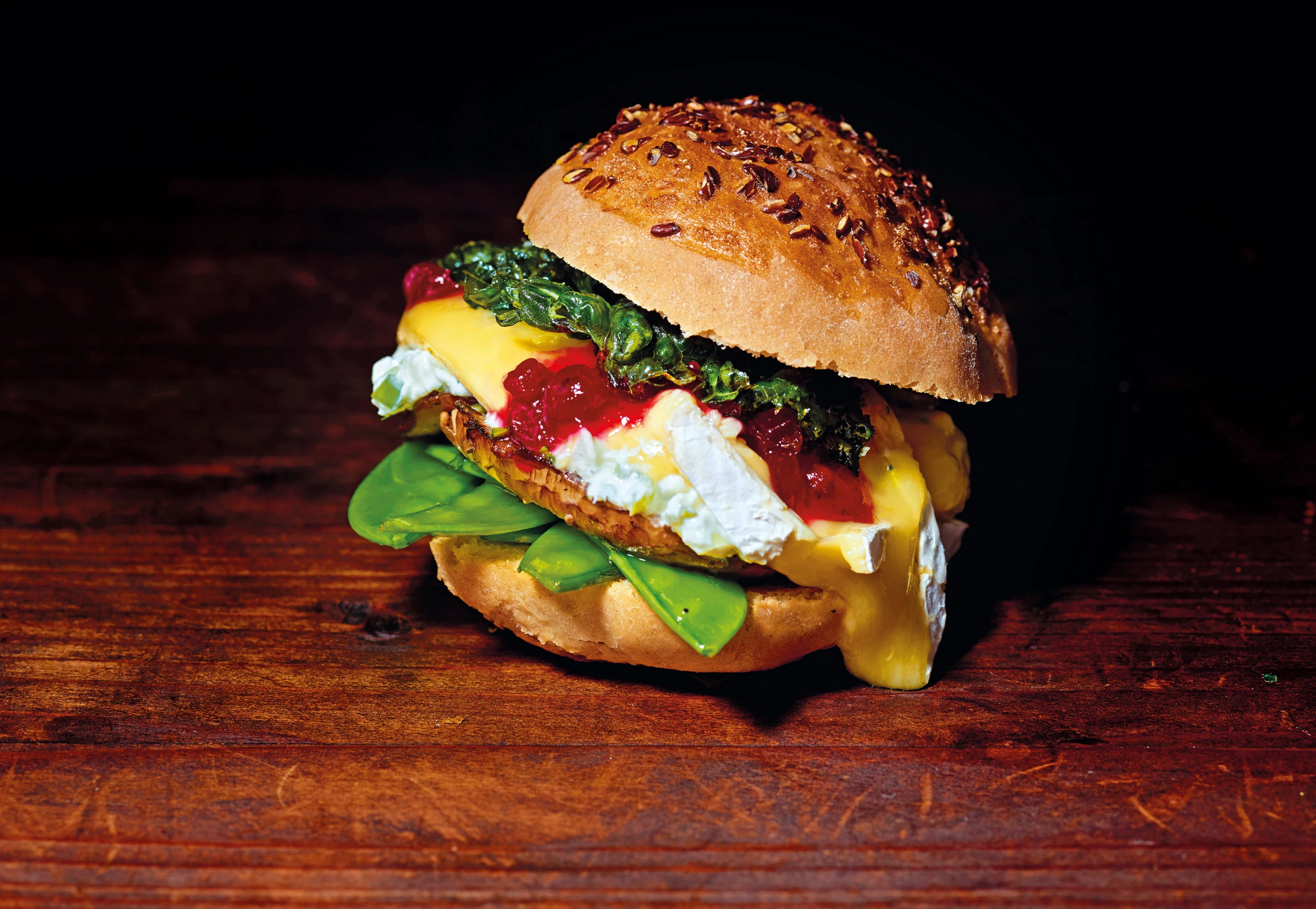Veggieburger mit Portobello, Brie und Preiselbeeren
