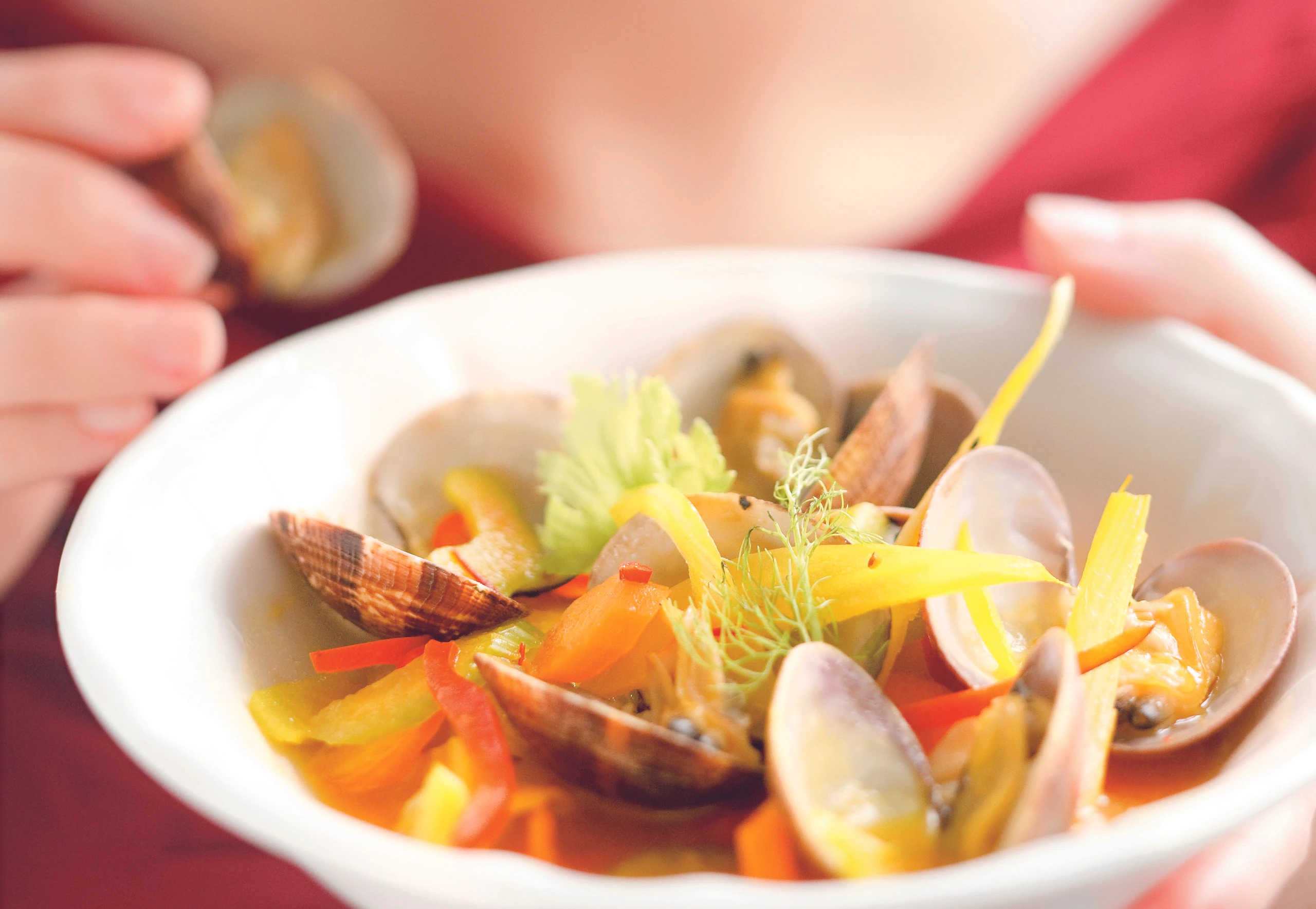 Venusmuscheln in Safran-Gemüsefond