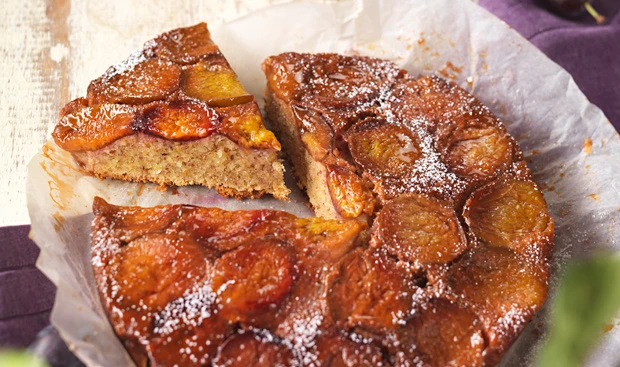 Rohr auf 160°C vorheizen. Springform (Ø 20 cm) mit Backpapier auslegen. Zwetschken halbieren und entkernen.