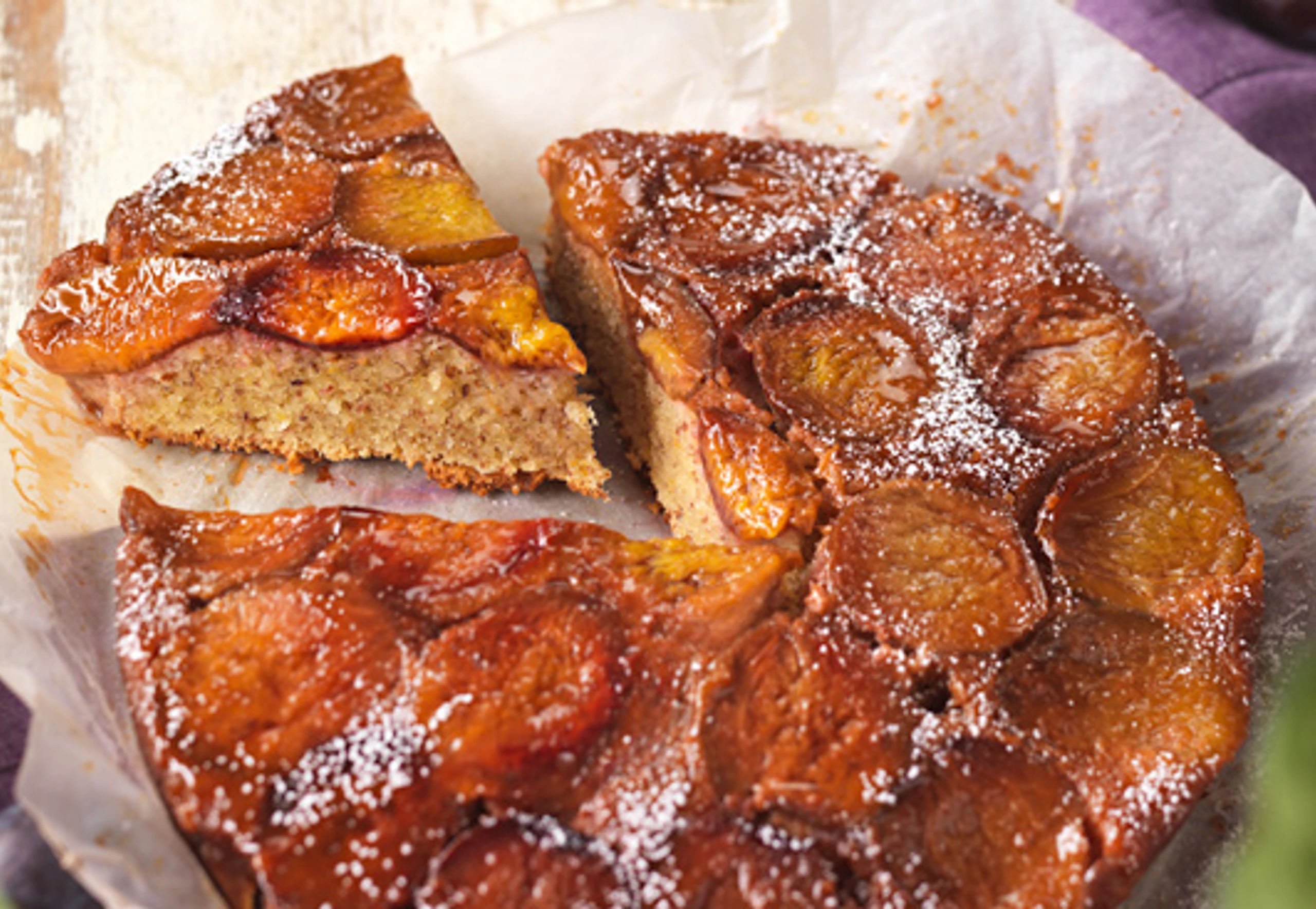 In einer Pfanne 70 g vom Zucker karamellisieren, Pfanne vom Herd nehmen, 20 g von der Butter einrühren. Karamell in der Form verstreichen, Zwetschken mit der Schnittfläche nach unten darauf legen.