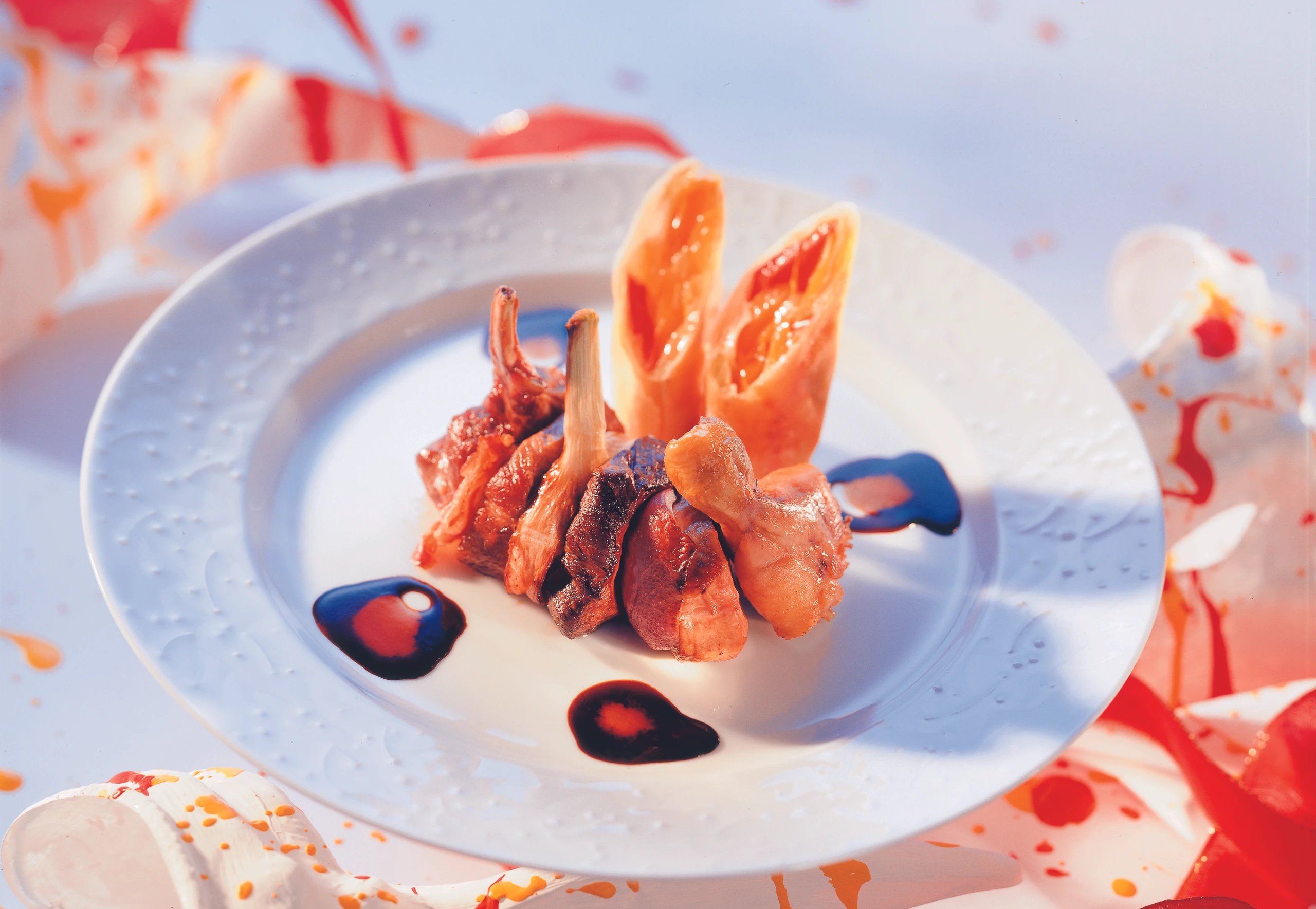 Helle und dunkle Glace getrennt aufkochen. Spagat von den „Spießen“ entfernen. „Spieße“ mit dem Ratatouille-Gemüse (siehe Rezept) und den Glaces anrichten und rasch servieren.
