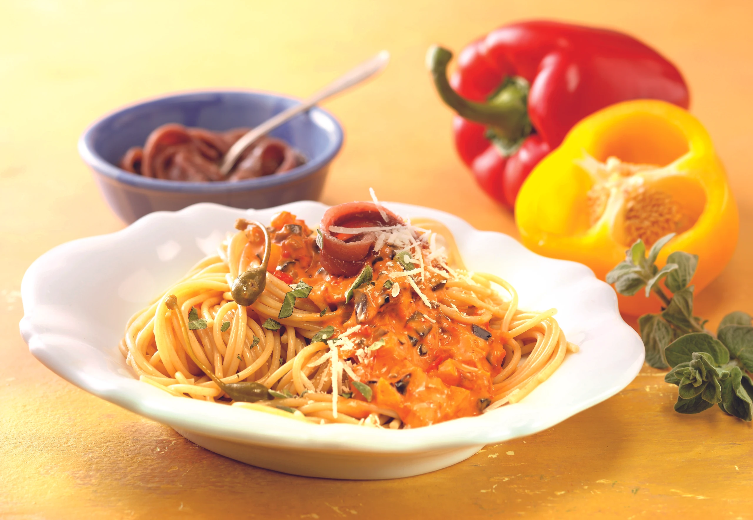 Vollkorn-Spaghetti mit mediterraner Gemüsesauce