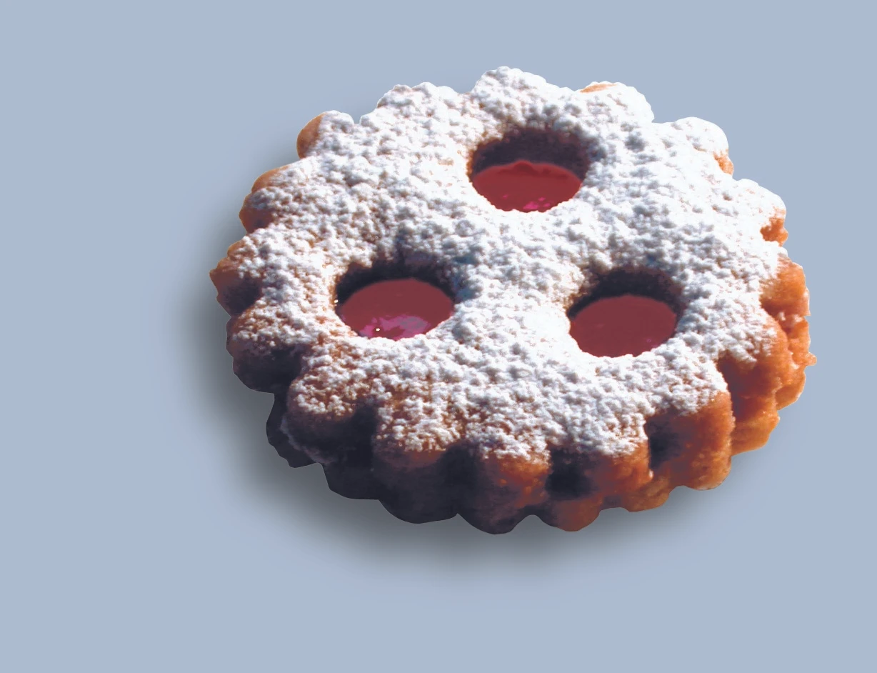 Teigscheiben (gelochte und ungelochte getrennt) auf die Backbleche legen und ca. 10 Minuten (mittlere Schiene) hell backen. Die gelochten Scheiben kurz überkühlen lassen und mit Staubzucker bestreuen.